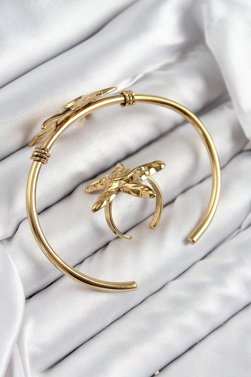 Dodes Dodes Pirinç Deniz Yıldızı Model Gold Renk Bileklik Yüzük Set TG27BB7600