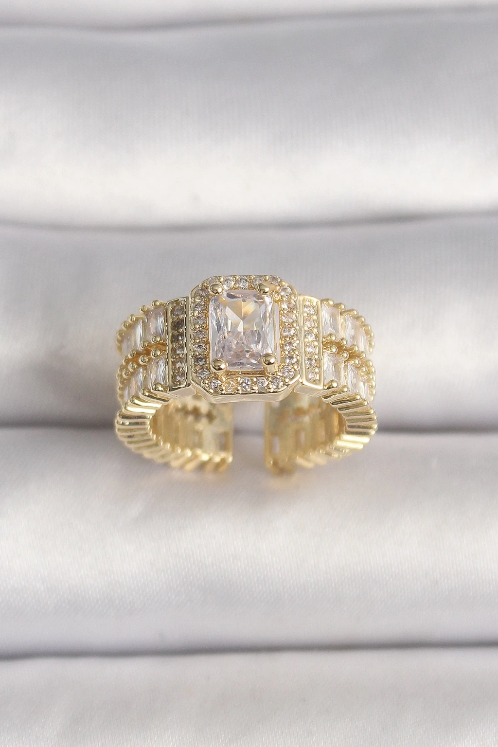 Dodes Dodes Pirinç Gold Renk Ayarlanabilir Baget Zirkon Taş Model Kadın Yüzük TG27BYK3589