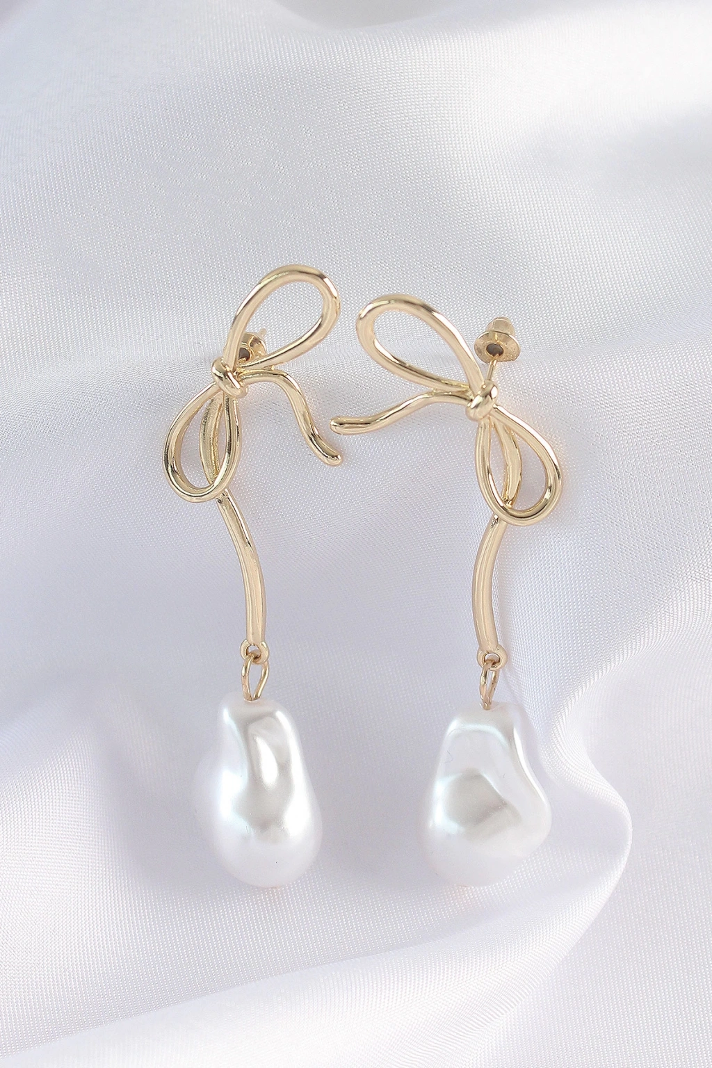 Dodes Dodes Pirinç Gold Renk Fiyonk Model İnci Taşlı Uzun Küpe TG27BKP8923