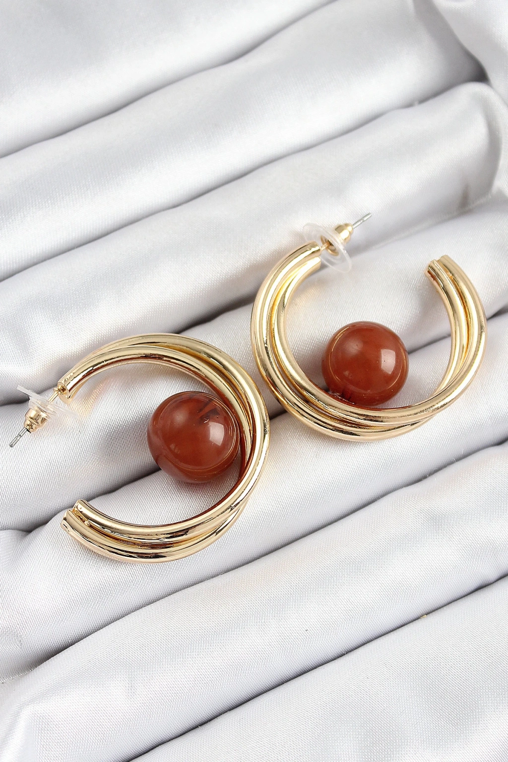 Dodes Dodes Pirinç Gold Renk Halka Model Kahverengi Boncuk Detay Kadın Küpe TG27BKP10364
