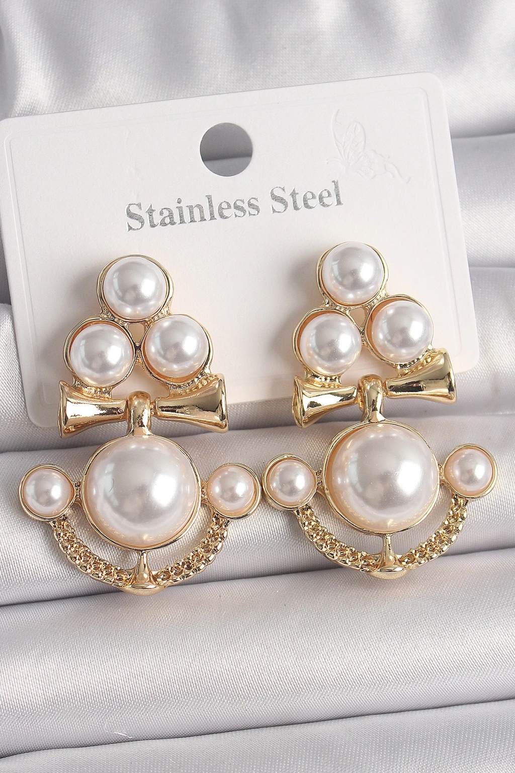 Dodes Dodes Pirinç Gold Renk İncili Çapa Model Kadın Küpe TG27BKP10063