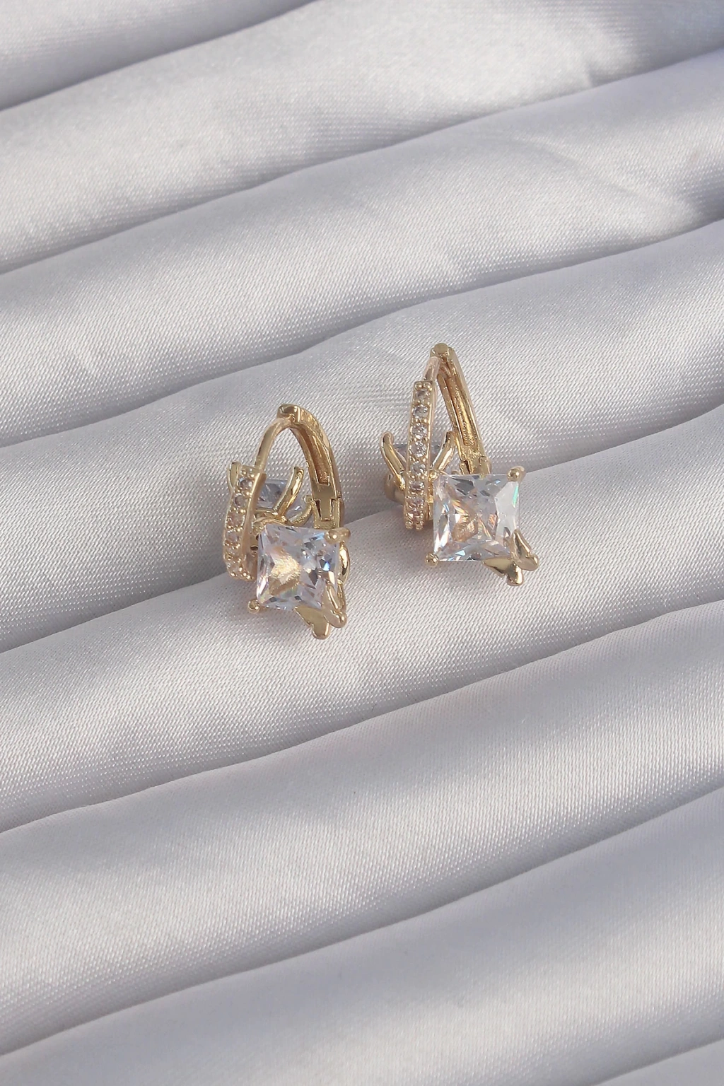 Dodes Dodes Pirinç Gold Renk İri Zirkon Taşlı Kıvrımlı Minimal Kelebekli Halka Küpe TG27BKP9289