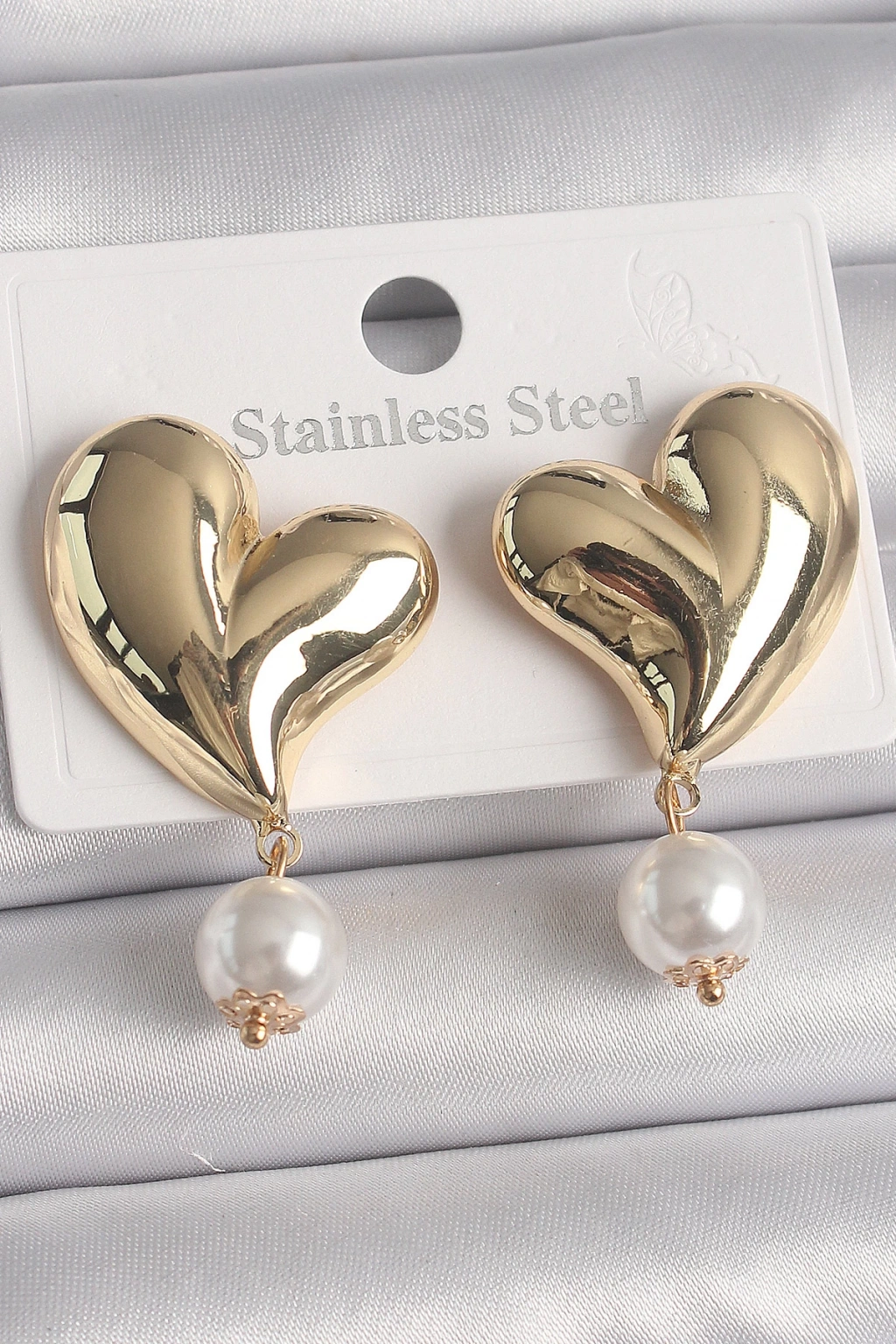 Dodes Dodes Pirinç Gold Renk Kalp Model Sallantı İnci Detay Kadın Küpe TG27BKP10080