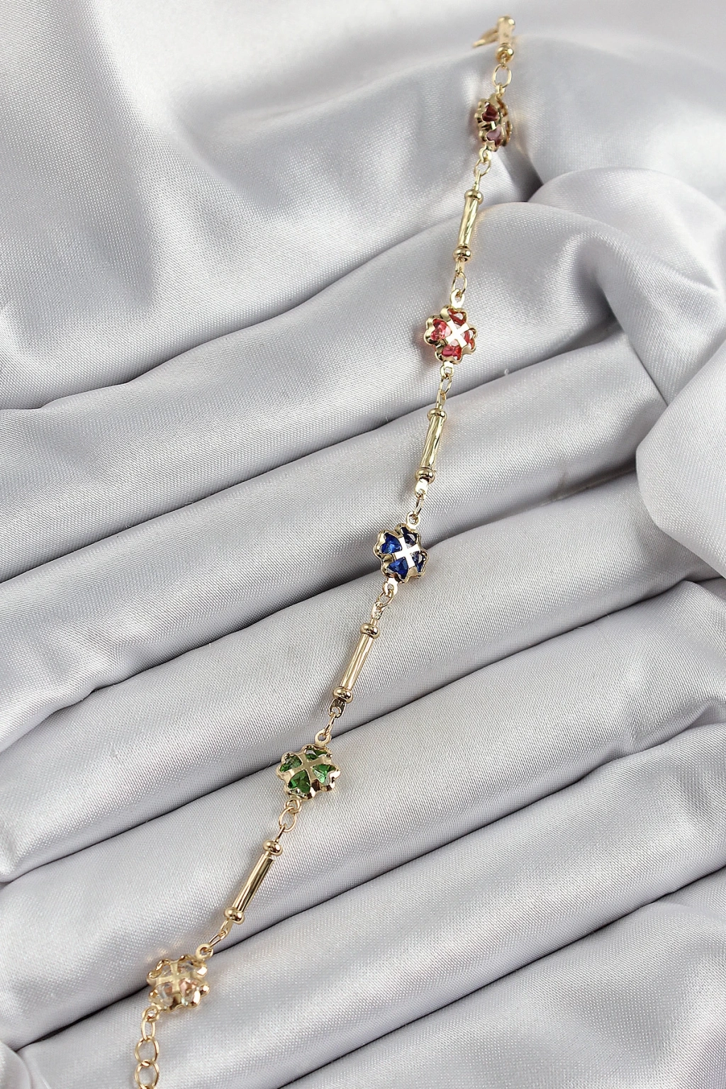 Dodes Dodes Pirinç Gold Renk Karışık Renk Yonca Zirkon Taşlı Kadın Bileklik TG27BB7056
