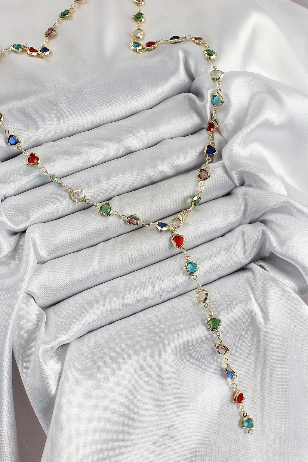 Dodes Dodes Pirinç Gold Renk Karışık Renk Zirkon Taşlı Kalpli Y Kadın Kolye TG27BKO10303