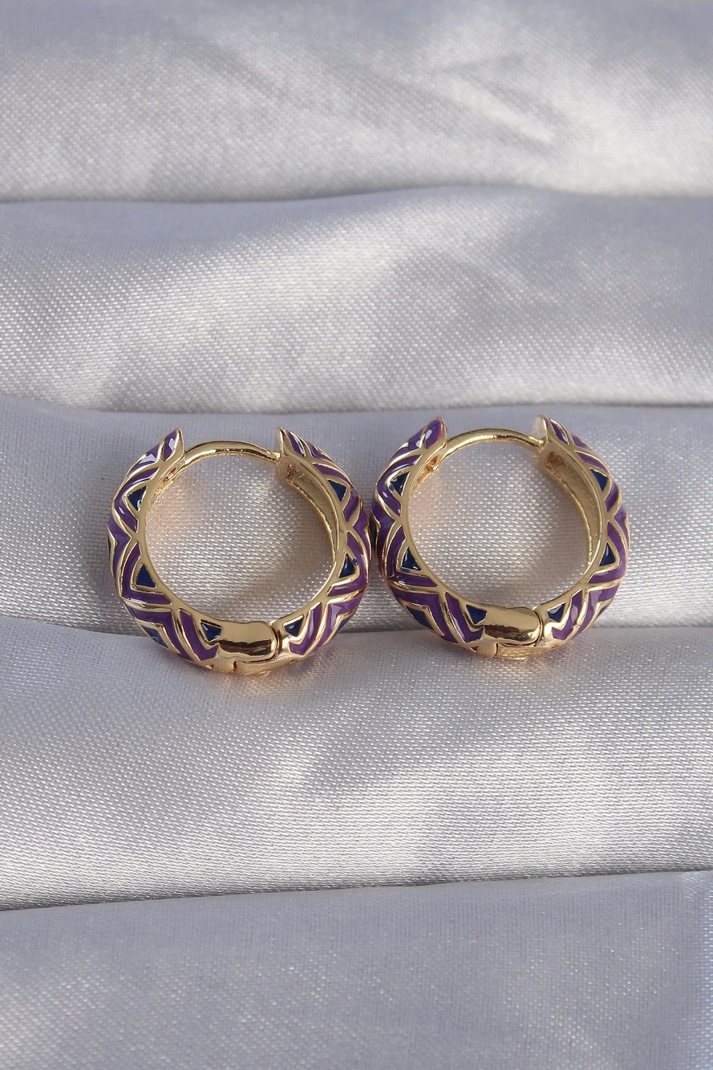 Dodes Dodes Pirinç Gold Renk Mor Etnik Desenli Halka Küpe TG27BKP9076