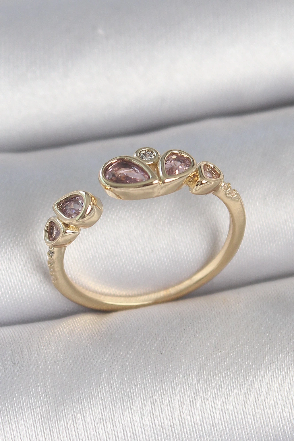 Dodes Dodes Pirinç Gold Renk Pembe Damla Zirkon Taşlı Ayarlanabilir Kadın Yüzük TG27BYK3735