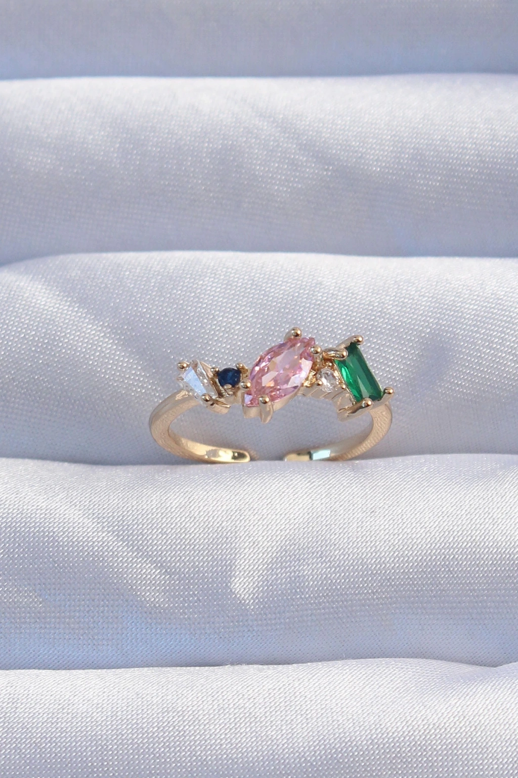 Dodes Dodes Pirinç Gold Renk Renkli Zirkon Taşlı Ayarlanabilir Yüzük TG27BYK3237