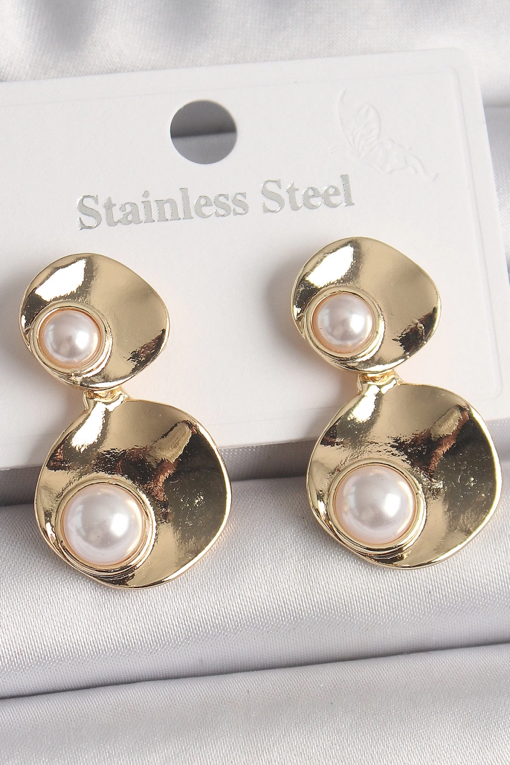 Dodes Dodes Pirinç Gold Renk Sallantı İnci Detaylı Daire Plaka Model Kadın Küpe TG27BKP10077