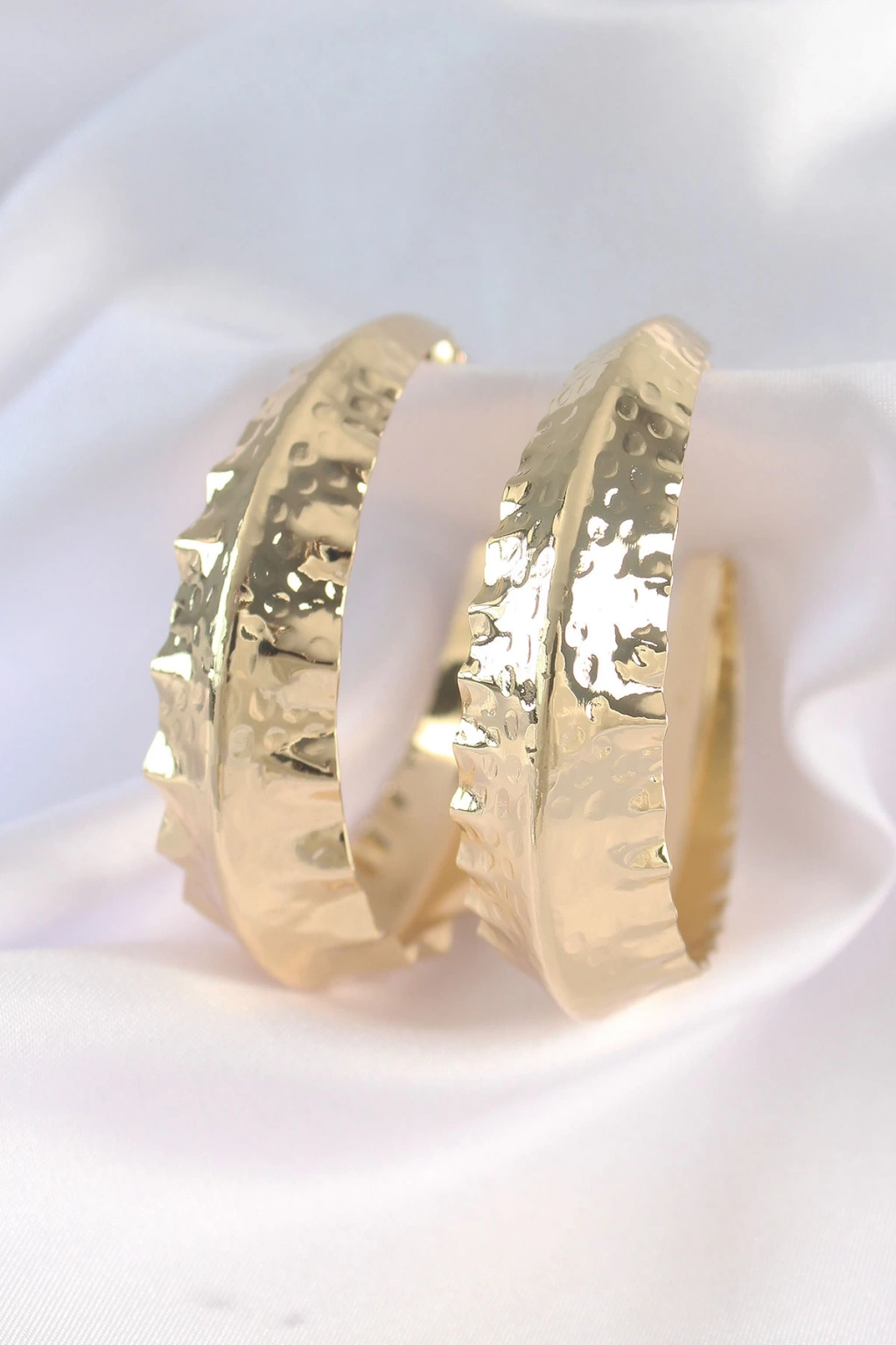Dodes Dodes Pirinç Gold Renk Yaprak Desenli Halka Küpe TG27BKP8921