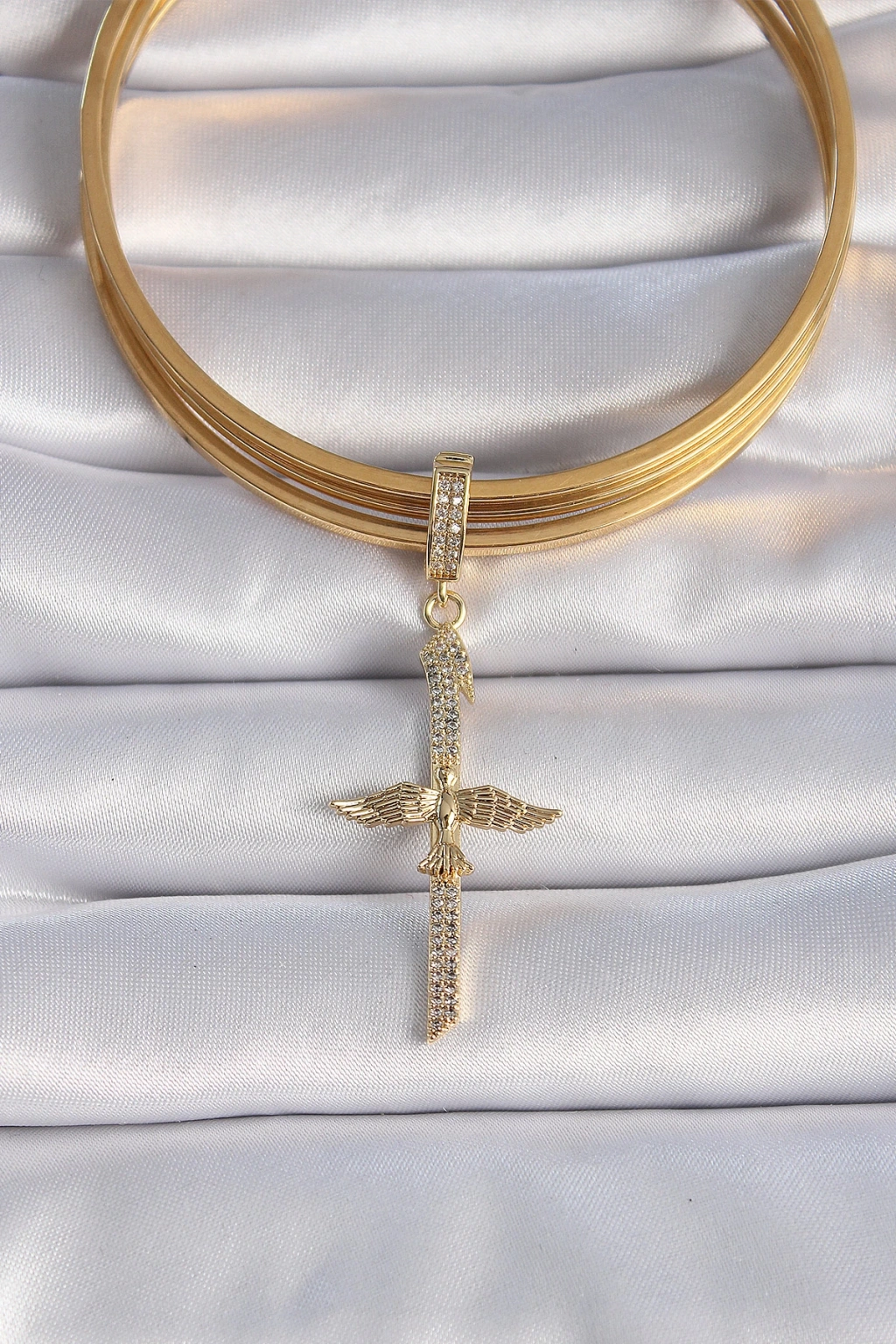 Dodes Dodes Pirinç Gold Renk Zirkon Taş Detaylı Elif Model Anka Kuşu Figür Ajda Charm TG27BC1013