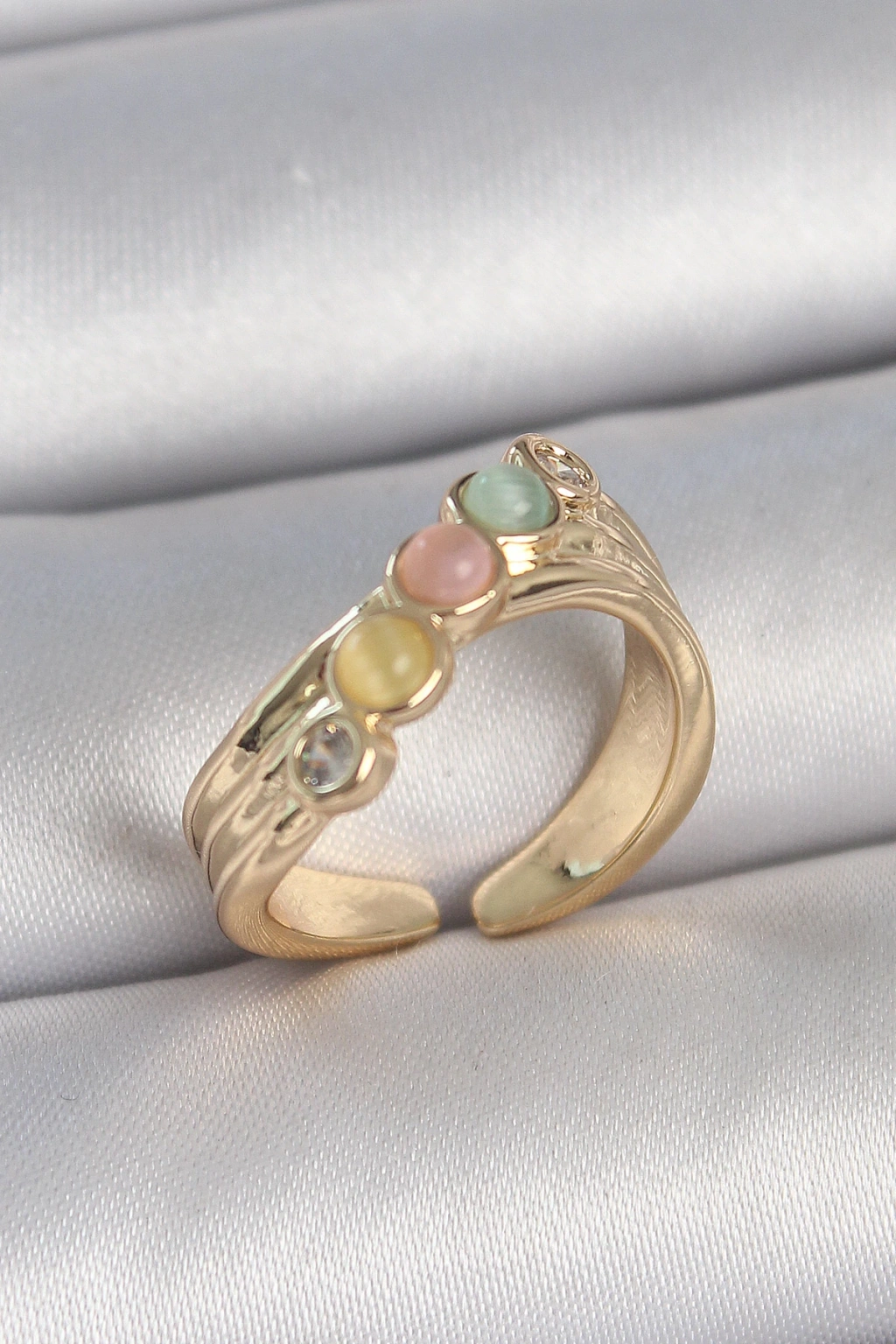 Dodes Dodes Pirinç Gold Renk Zirkon Taş Detaylı Karışık Mineli Ayarlanabilir Kadın Yüzük TG27BYK3729