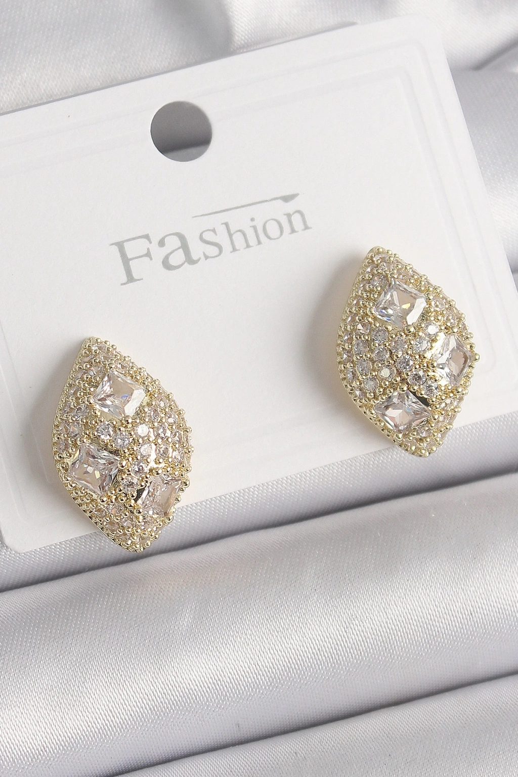 Dodes Dodes Pirinç Gold Renk Zirkon Taş İşlemeli Damla Model Kadın Küpe TG27BKP9862