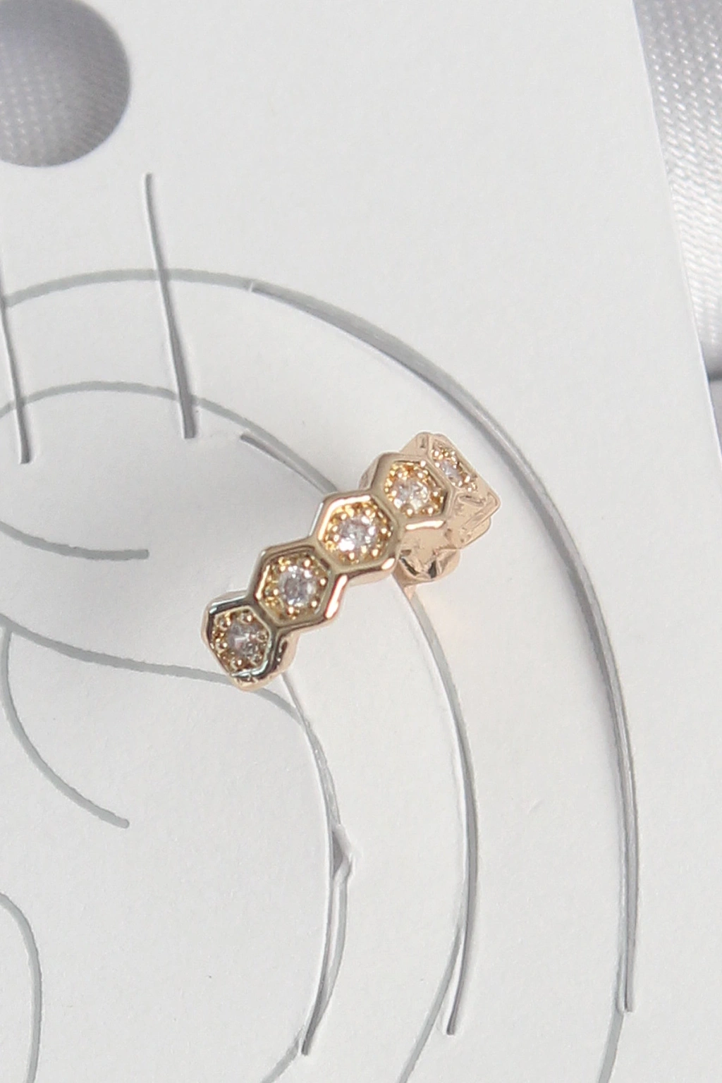 Dodes Dodes Pirinç Gold Renk Zirkon Taşlı Bal Peteği Model Kadın Kıkırdak Küpe TG27BKP10582