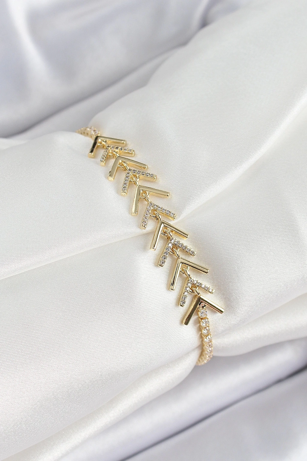 Dodes Dodes Pirinç Gold Renk Zirkon Taşlı Balık Sırtı Kadın Bileklik TG27BB7068