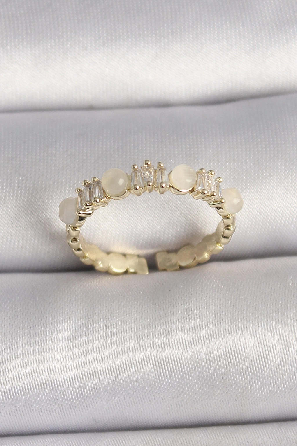 Dodes Dodes Pirinç Gold Renk Zirkon Taşlı Beyaz Mineli Ayarlanabilir Yüzük TG27BYK3559