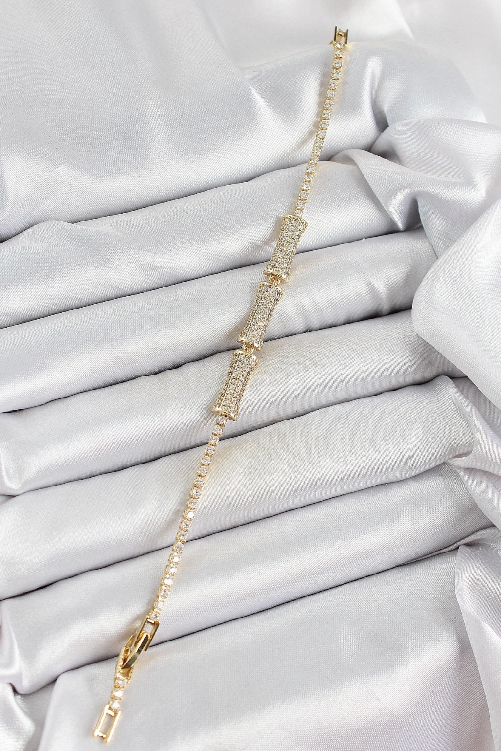 Dodes Dodes Pirinç Gold Renk Zirkon Taşlı Kemik Model Kadın Bileklik TG27BB7070