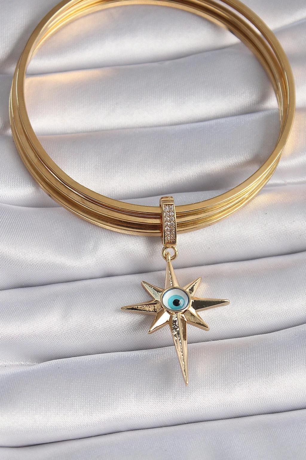 Dodes Dodes Pirinç Gold Renk Zirkon Taşlı Kutup Yıldızı Nazar Boncuk Detay Ajda Charm TG27BC1006