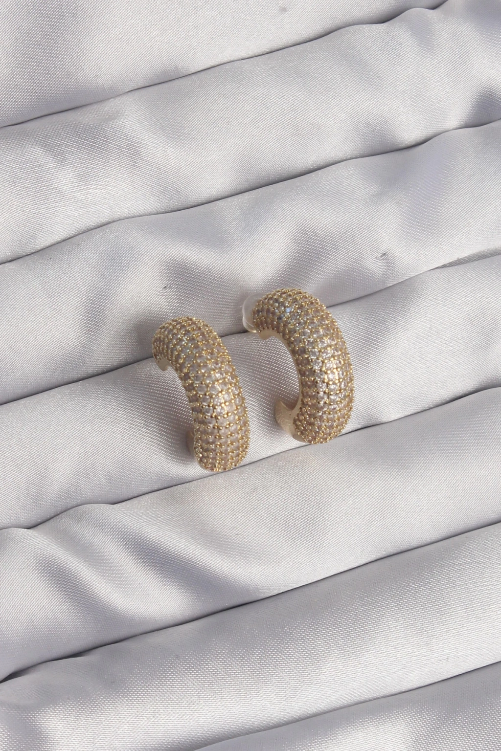 Dodes Dodes Pirinç Gold Renk Zirkon Taşlı Yarım Halka Küpe TG27BKP9113