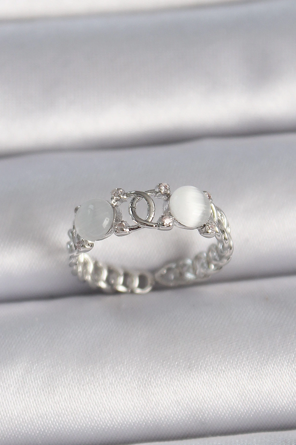 Dodes Dodes Pirinç Gümüş Renk Ayarlanabilir Zirkon Taşlı Beyaz Mineli Birleşik Halka Model Kadın Yüzük TG27BYK3403