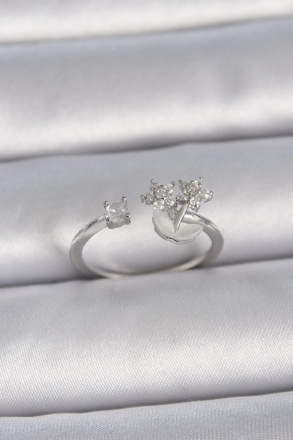 Dodes Dodes Pirinç Gümüş Renk Ayarlanabilir Zirkon Taşlı Yıldız Model Kadın Yüzük TG27BYK3397