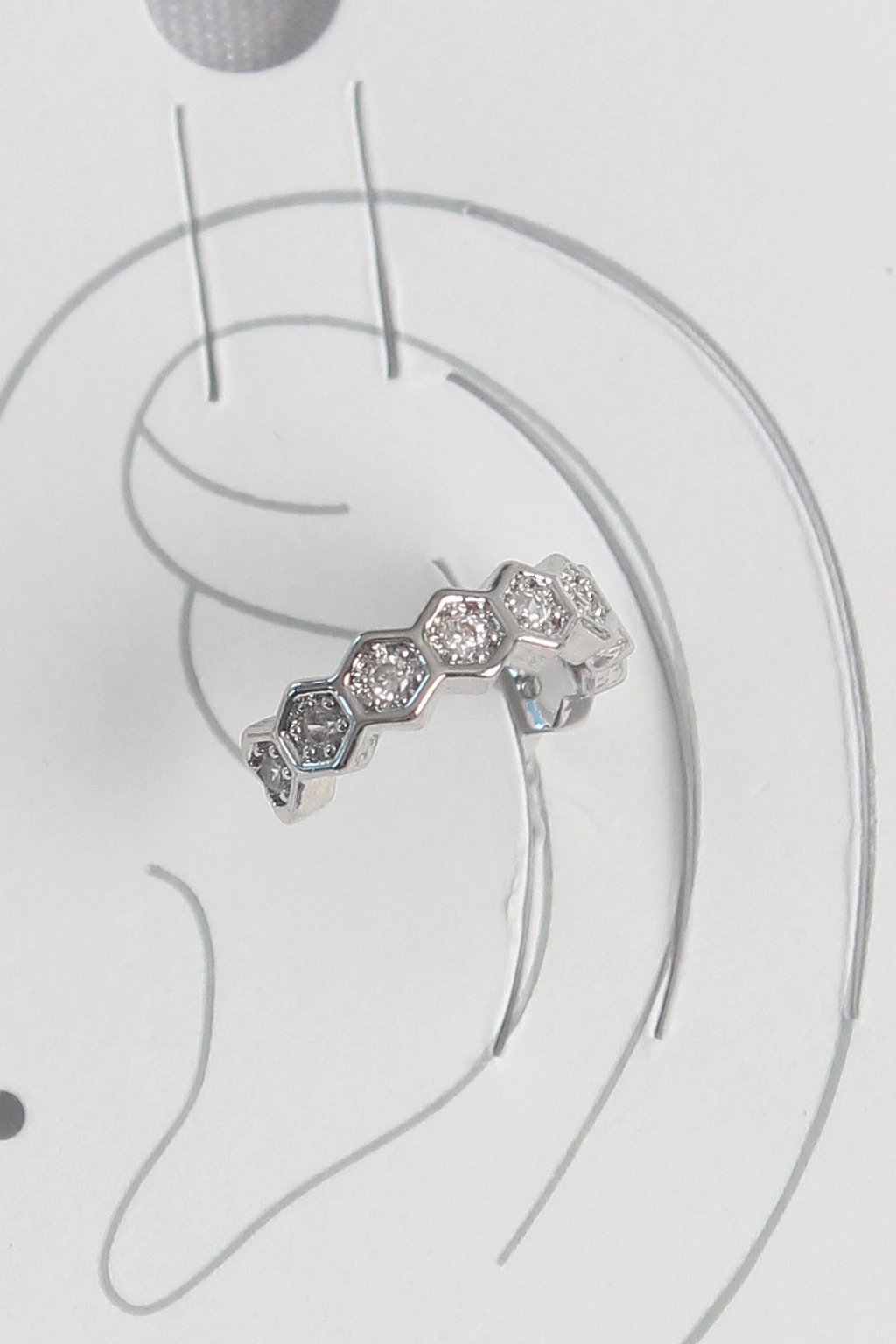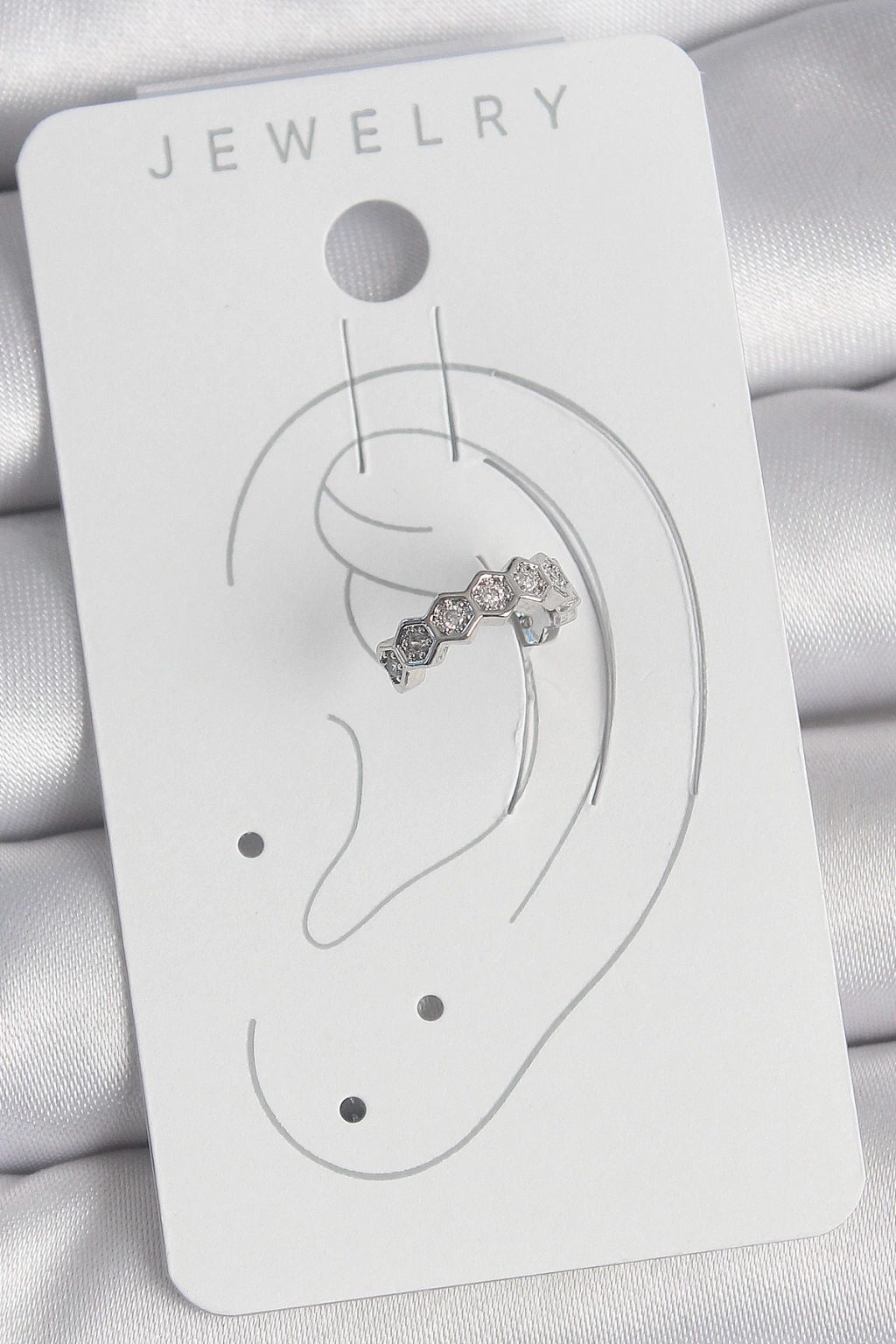 Dodes Dodes Pirinç Gümüş Renk Bal Peteği Model Zirkon Taşlı Kadın Kıkırdak Küpe TG27BKP10568