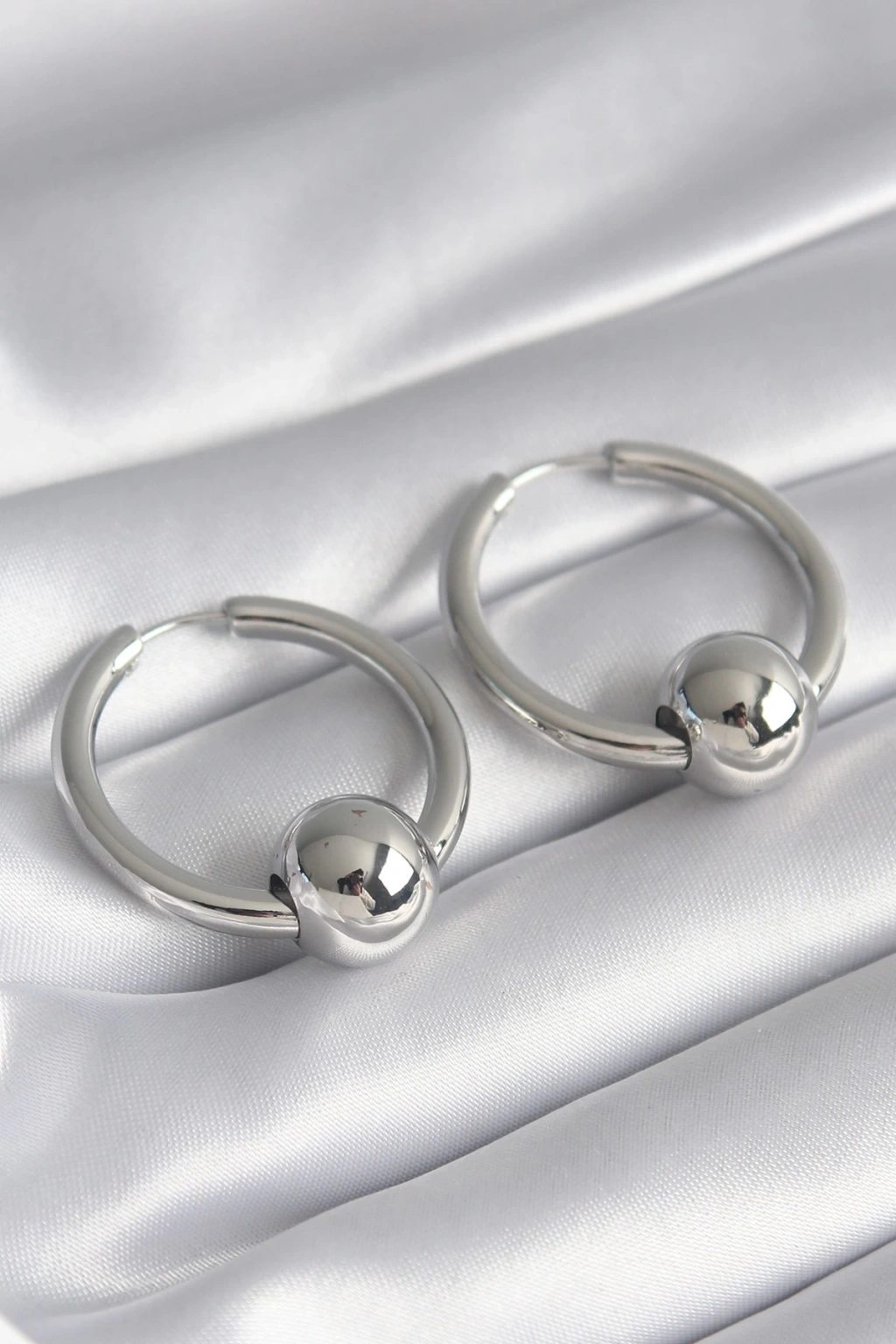 Dodes Dodes Pirinç Gümüş Renk Halka Top Model Kadın Küpe TG27BKP8500