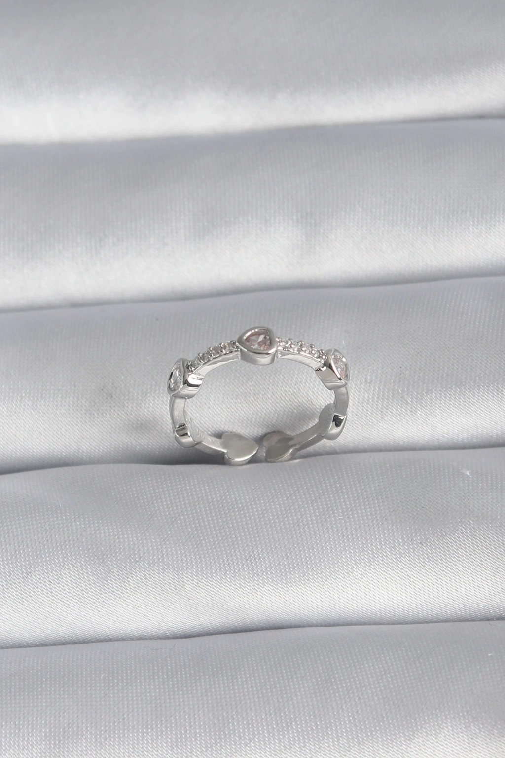 Dodes Dodes Pirinç Gümüş Renk Kalp Model Zirkon Taş Detay Kadın Yüzük TG27BYK3005