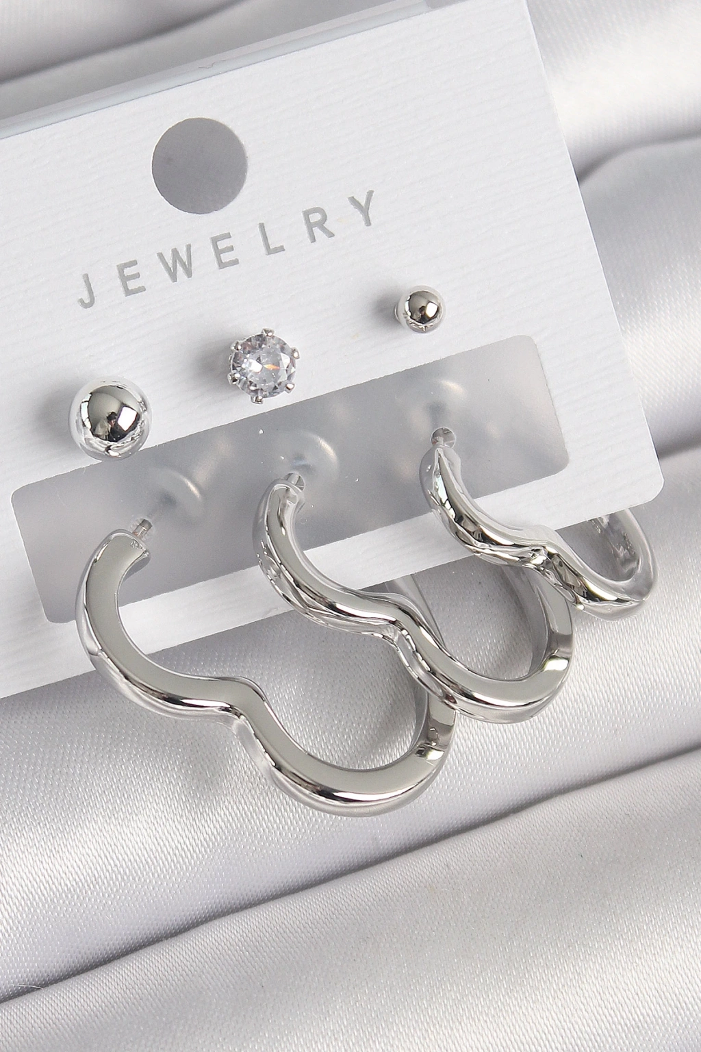 Dodes Dodes Pirinç Gümüş Renk Kalp Model Zirkon Taş Topçuk Detay Kadın Küpe Seti TG27BKP10307