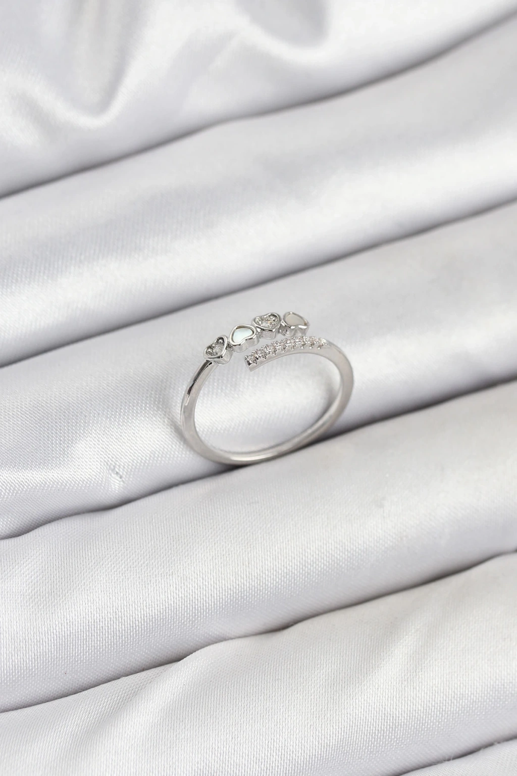 Dodes Dodes Pirinç Gümüş Renk Kalpli Detaylı Zirkon Taşlı Kadın Yüzük TG27BYK3841