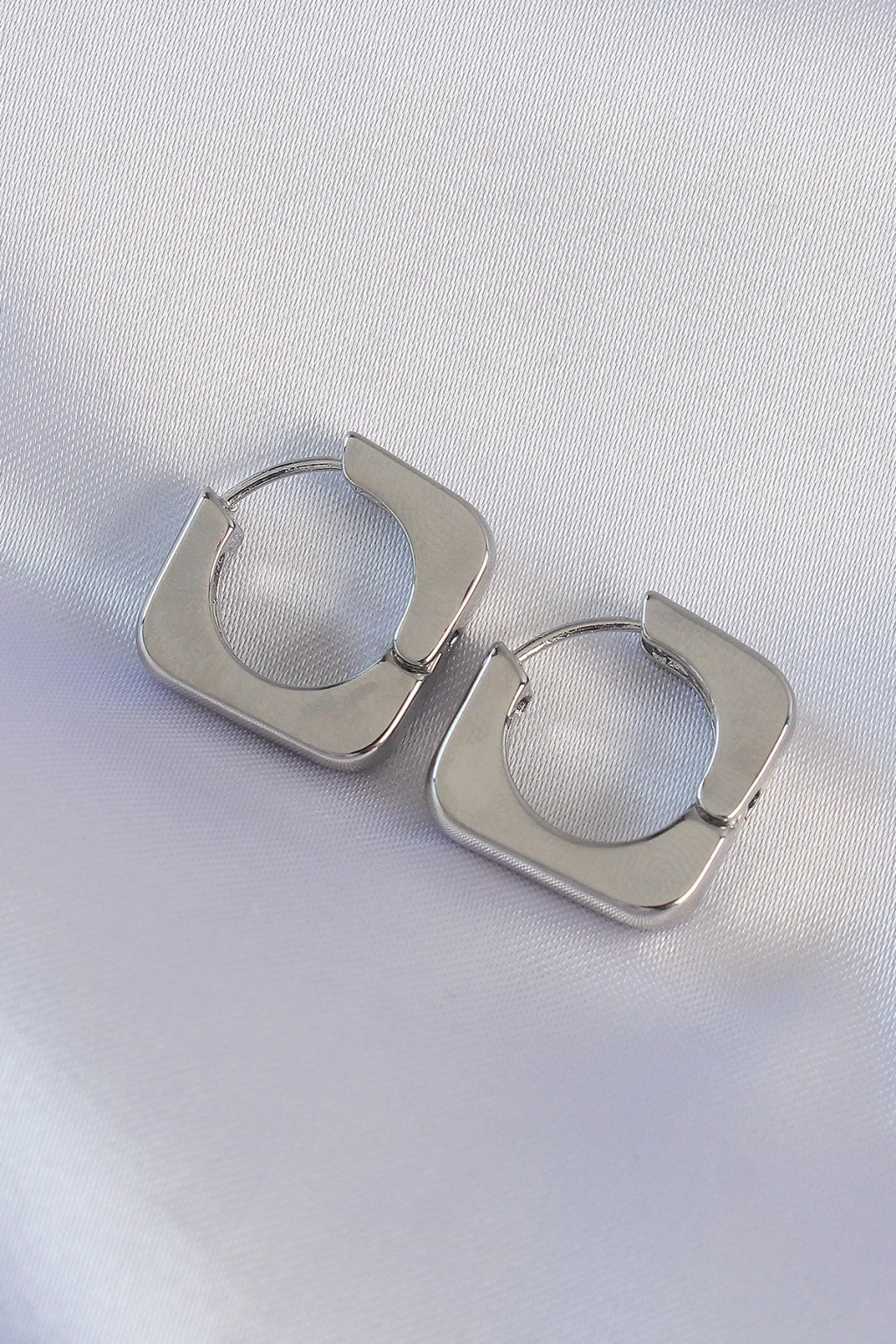 Dodes Dodes Pirinç Gümüş Renk Kare Küpe TG27BKP8987