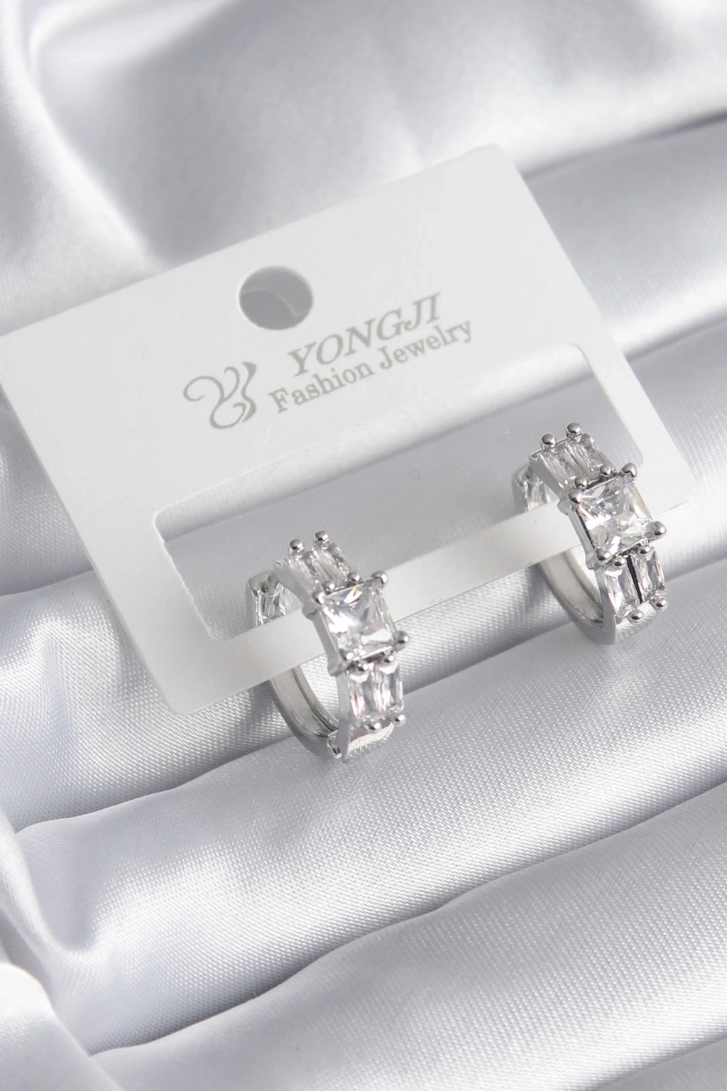 Dodes Dodes Pirinç Gümüş Renk Kare Zirkon Taşlı Kadın Küpe TG27BKP8351
