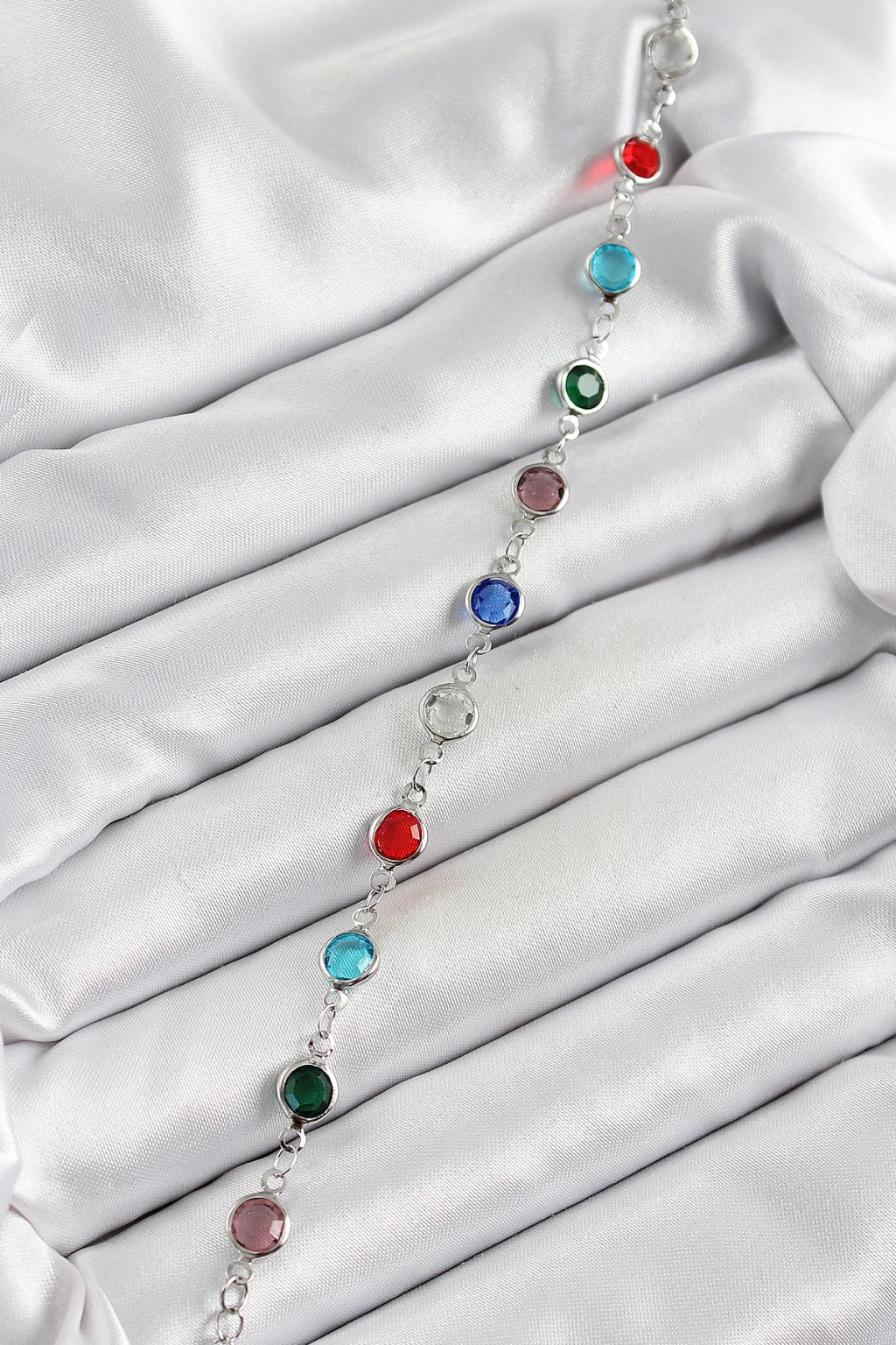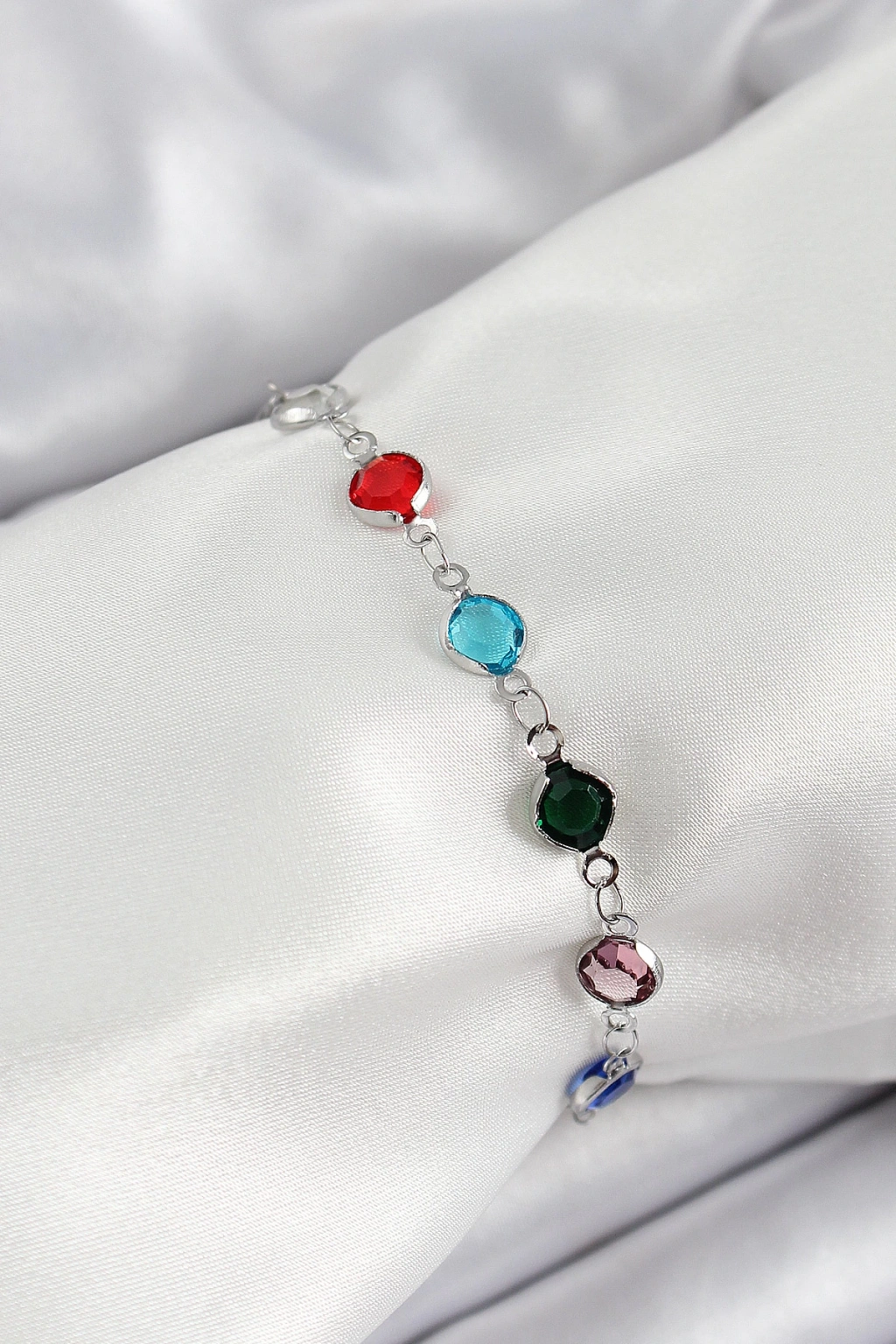 Dodes Dodes Pirinç Gümüş Renk Karışık Renk Zirkon Taşlı Kadın Bileklik TG27BB7046