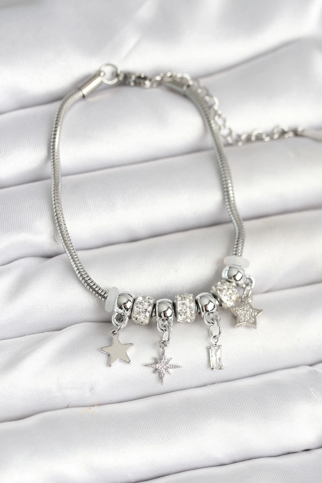 Dodes Dodes Pirinç Gümüş Renk Kutup Yıldızı Charmlı Kadın Bileklik TG27BB7992