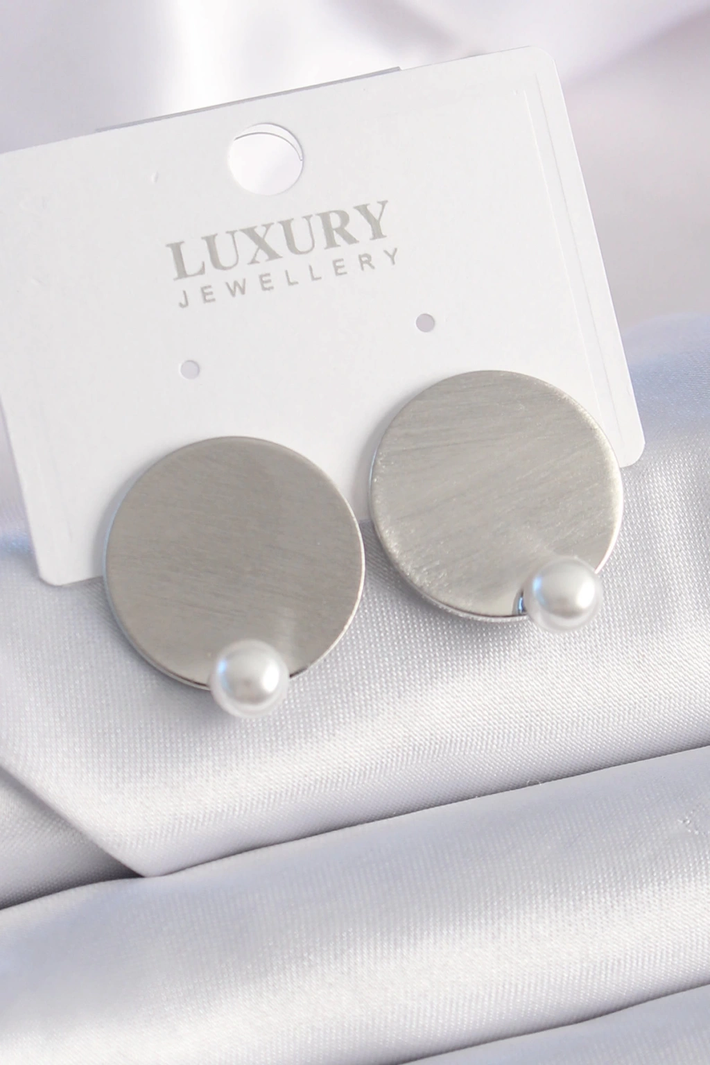 Dodes Dodes Pirinç Gümüş Renk Plaka Model İnci Detay Kadın Küpe TG27BKP9526