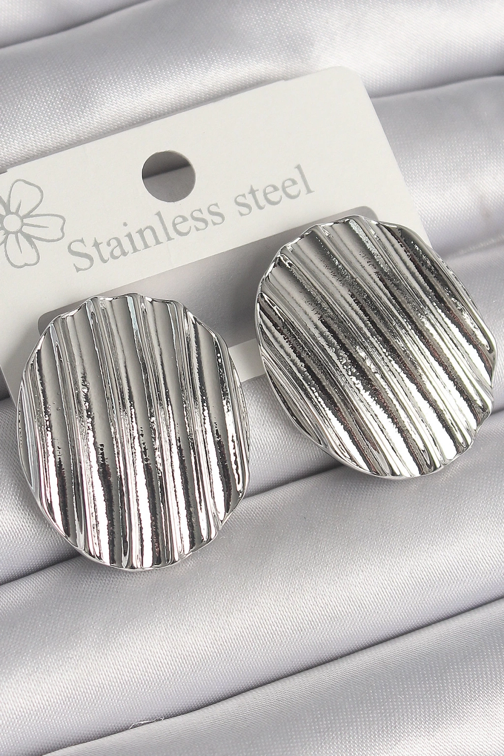 Dodes Dodes Pirinç Gümüş Renk Sallantı İşlemeli Daire Plaka Model Kadın Küpe TG27BKP10229