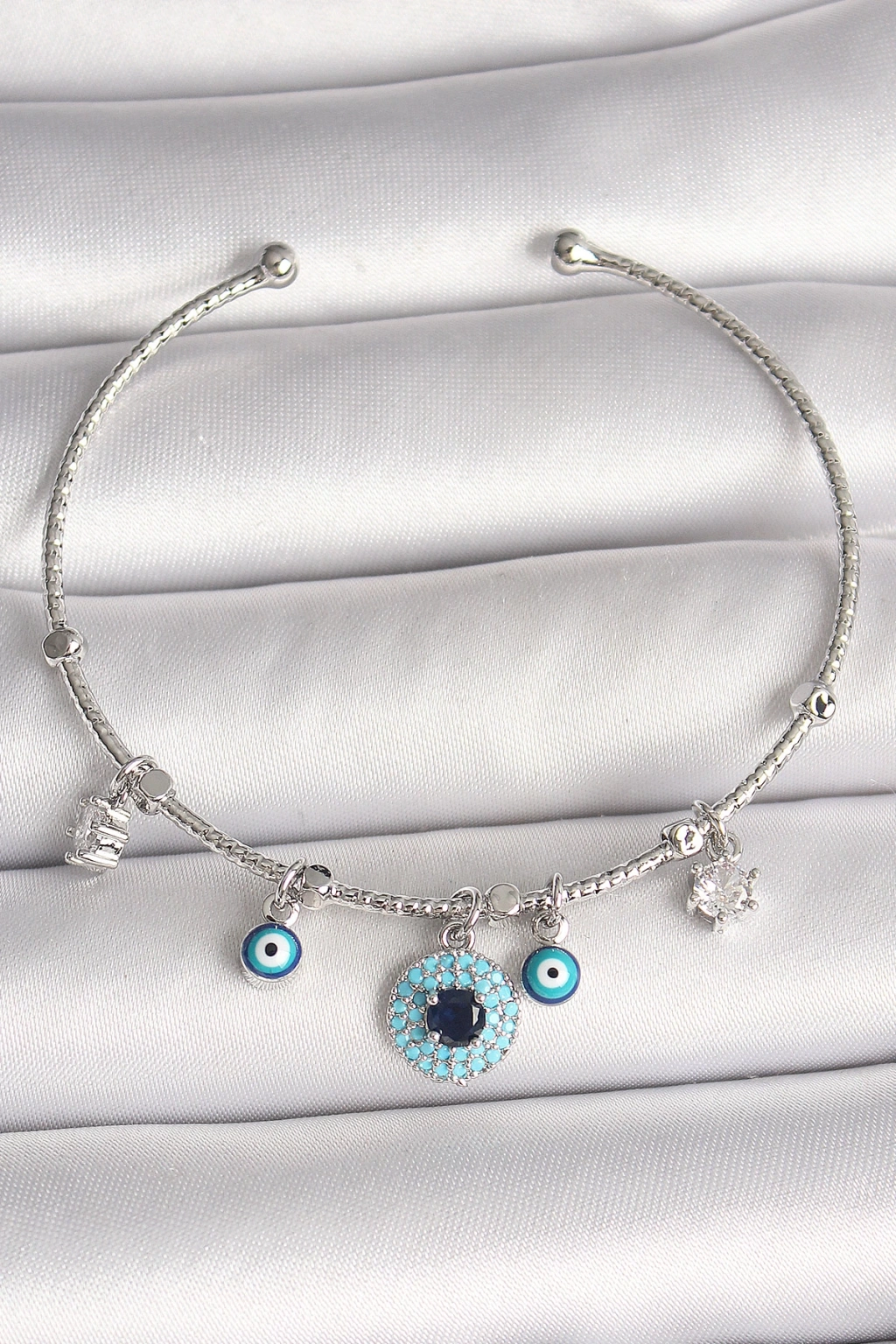 Dodes Dodes Pirinç Gümüş Renk Sallantı Zirkon Taşlı Nazar Boncuk Figür Charm Kadın Bileklik TG27BB6911