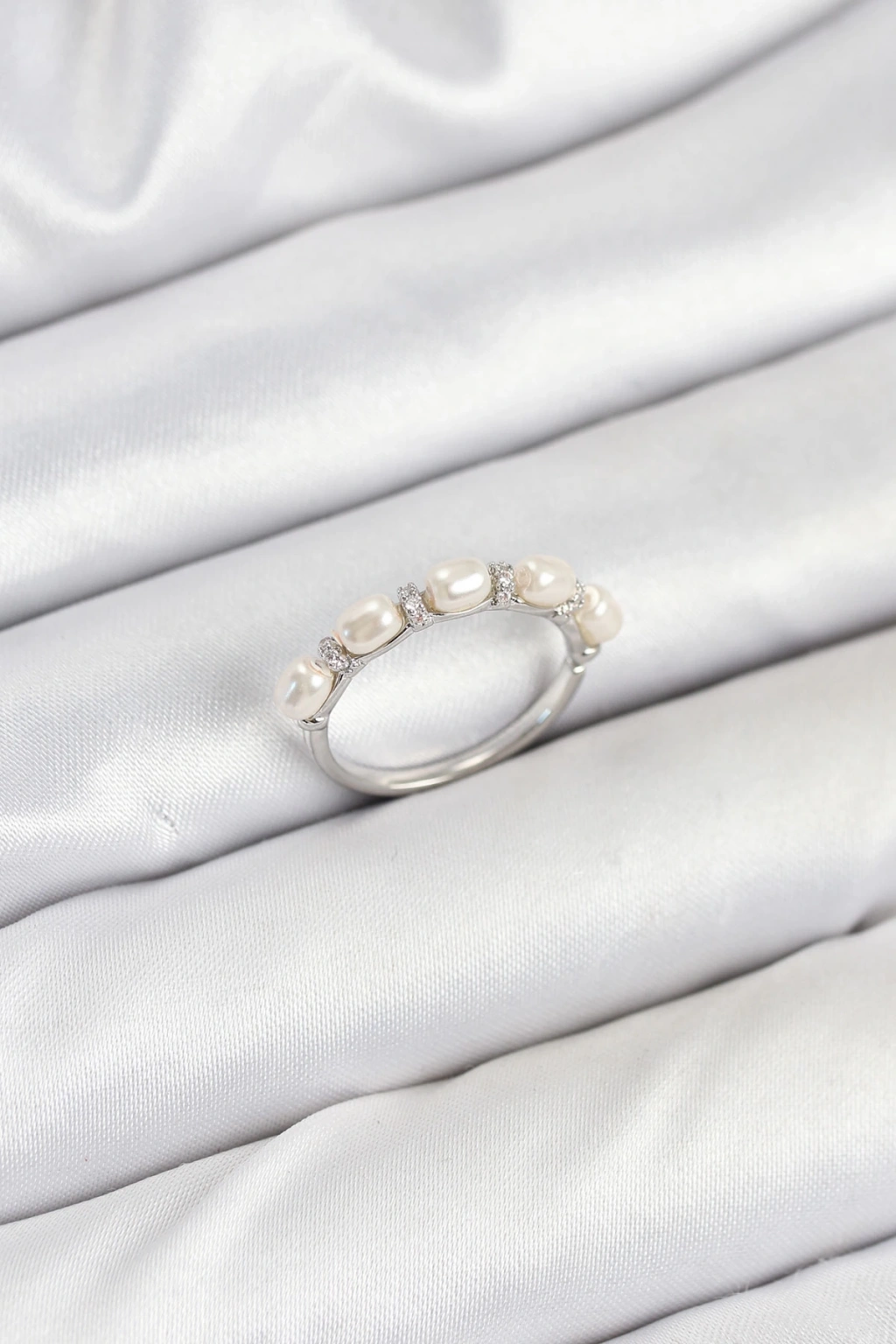 Dodes Dodes Pirinç Gümüş Renk Sıralı İncili Kadın Yüzük TG27BYK3845