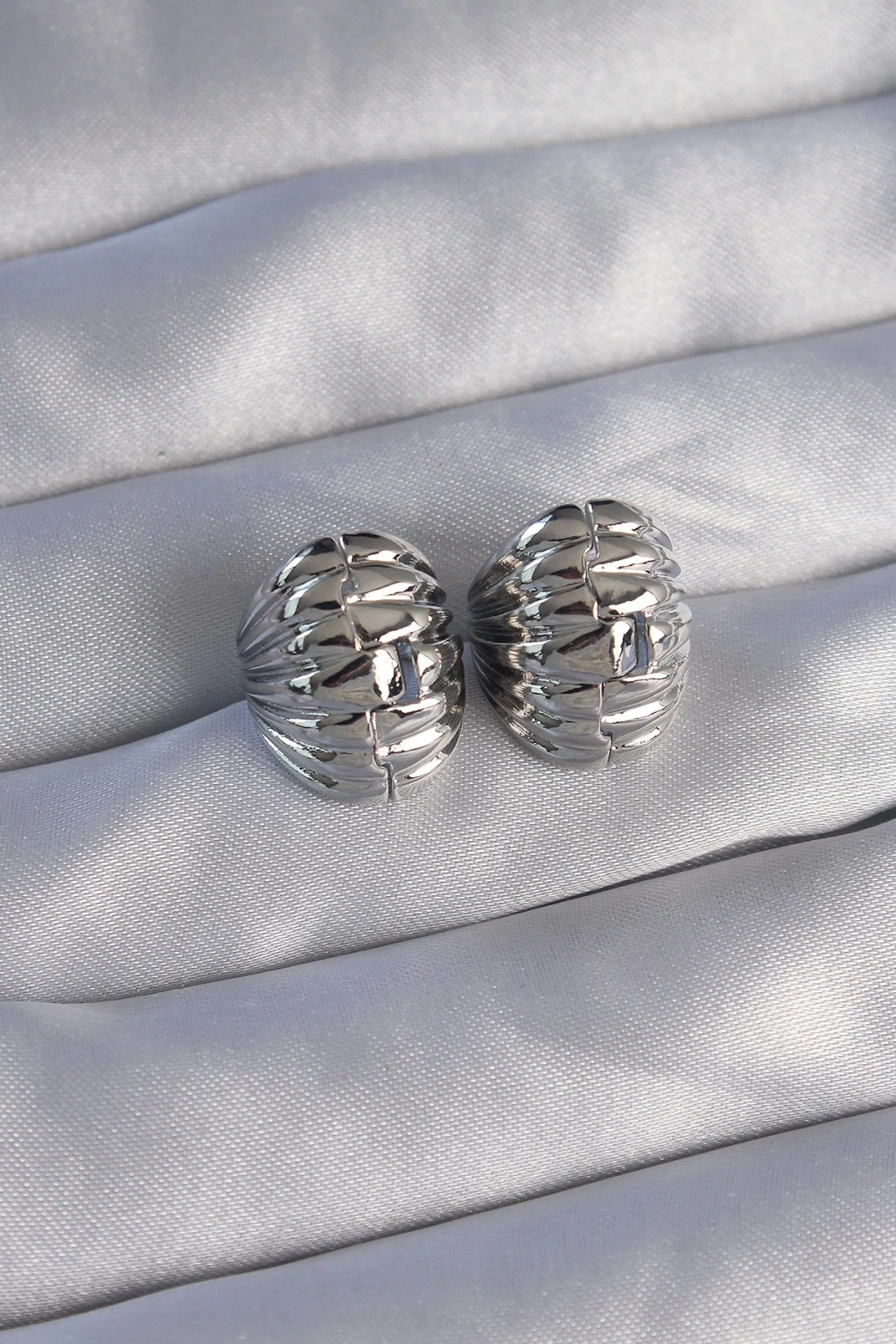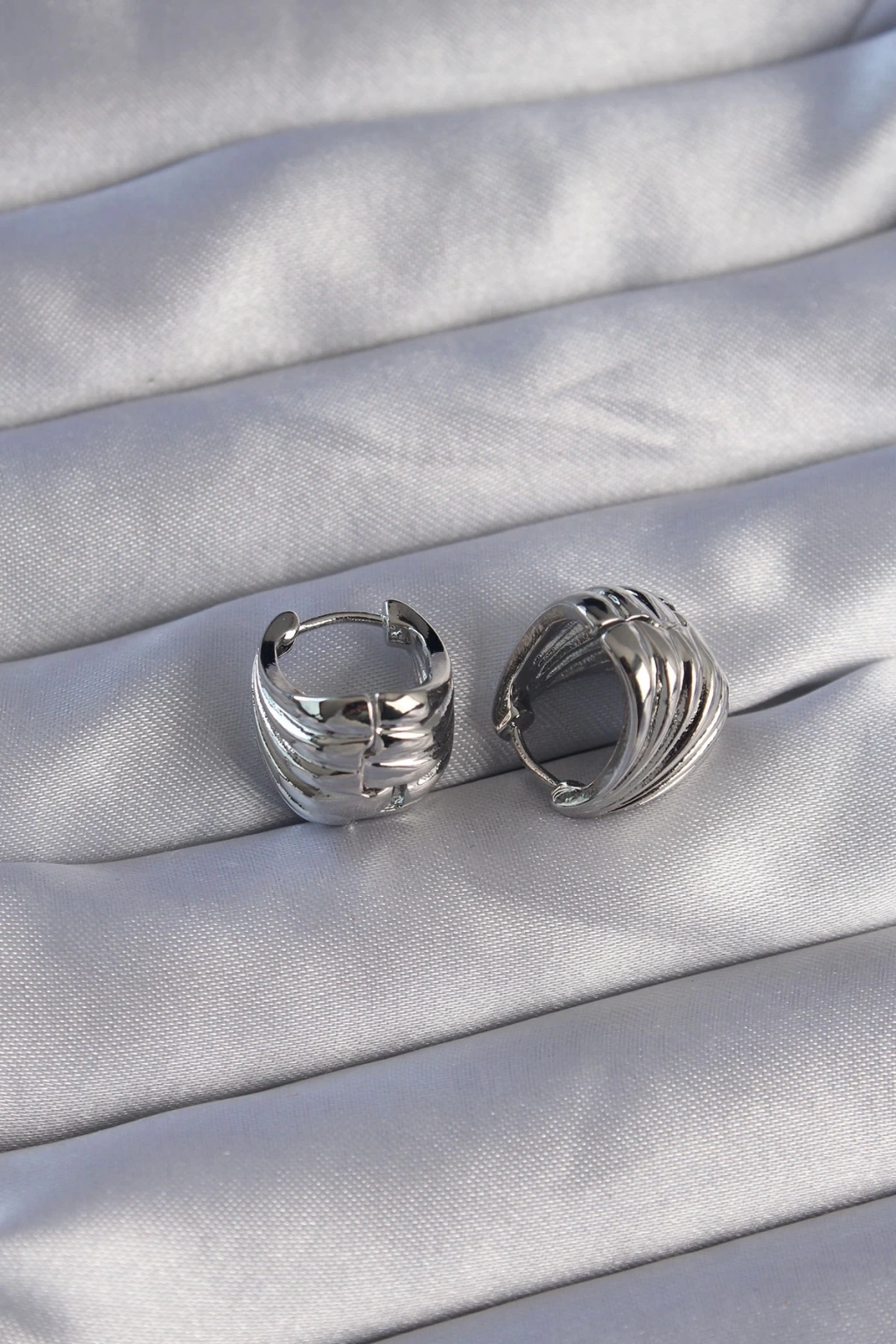 Dodes Dodes Pirinç Gümüş Renk Tırtıklı Minimal Bombeli Tasarım Küpe TG27BKP9081