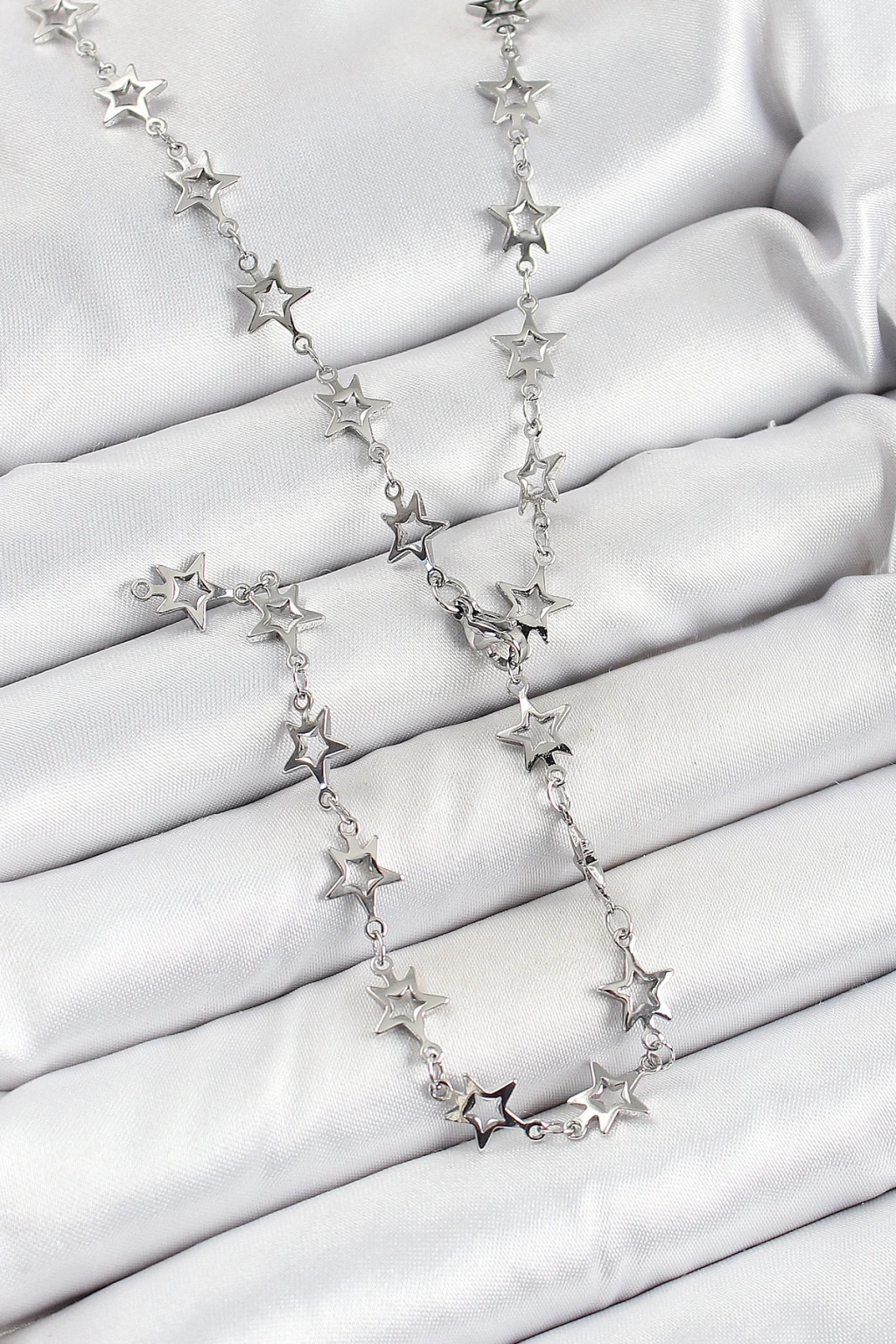 Dodes Dodes Pirinç Gümüş Renk Yıldızlı Kadın Y Kolye TG27BKO10300