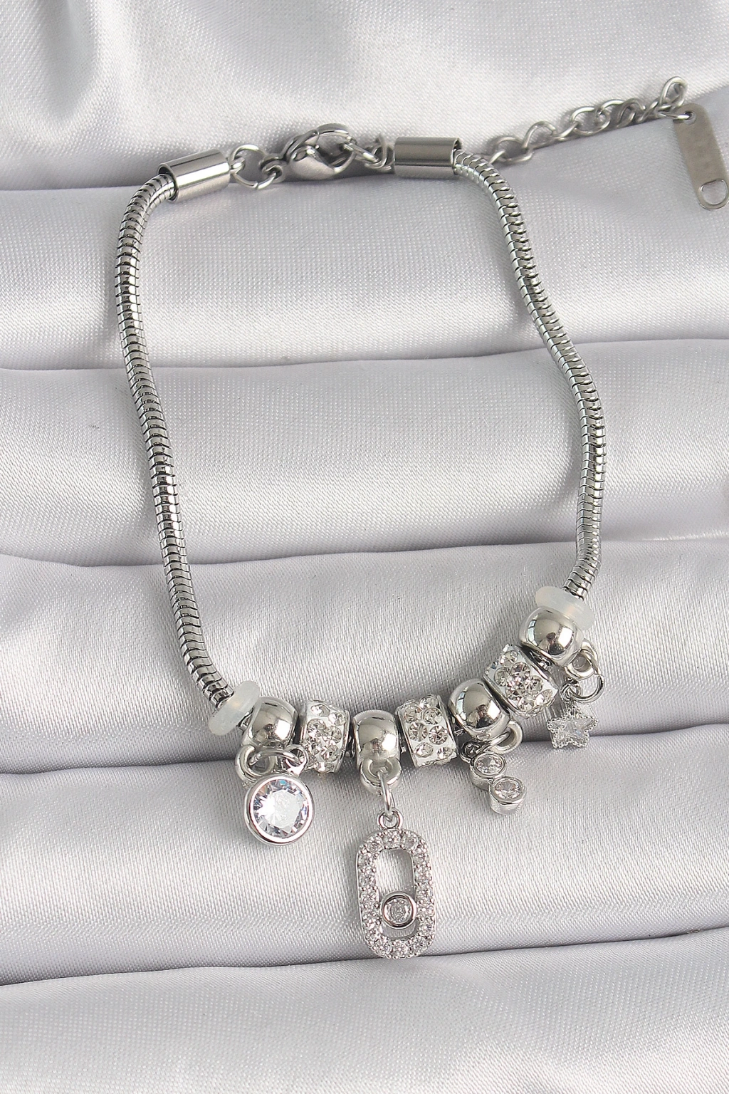 Dodes Dodes Pirinç Gümüş Renk Zincir Sallantı Zirkon Taşlı Messika Figür Yıldız Detay Kadın Bileklik TG27BB6697