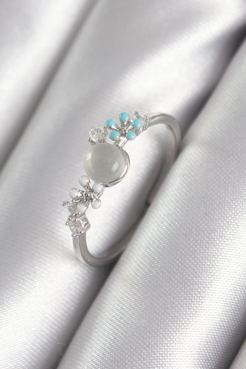 Dodes Dodes Pirinç Gümüş Renk Zirkon Taş Detaylı Beyaz Sedefli Çiçek Model Kadın Yüzük TG27BYK3044