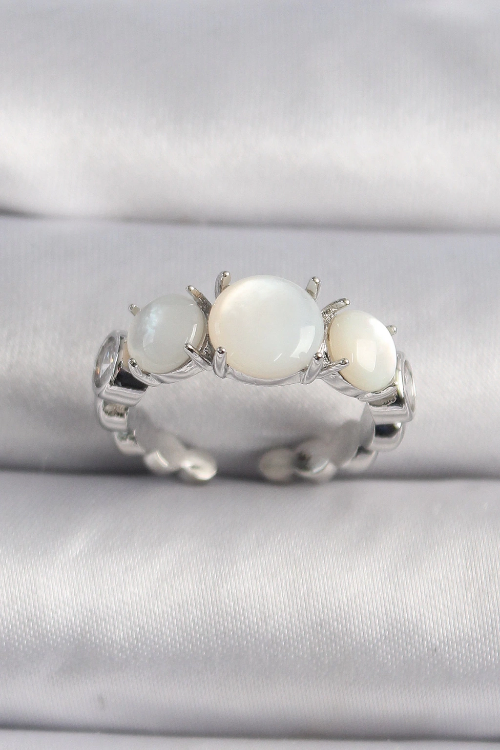 Dodes Dodes Pirinç Gümüş Renk Zirkon Taş Detaylı Beyaz Sedefli VIP Seri Kadın Yüzük TG27BYK3503