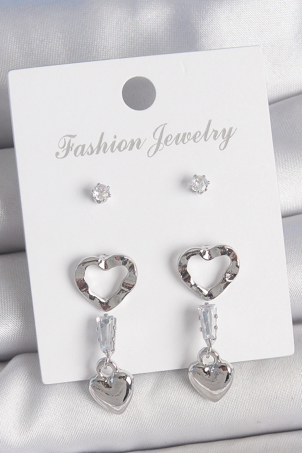 Dodes Dodes Pirinç Gümüş Renk Zirkon Taş Detaylı Sallantı Model 2 Çift Kadın Küpe Seti TG27BKP10595