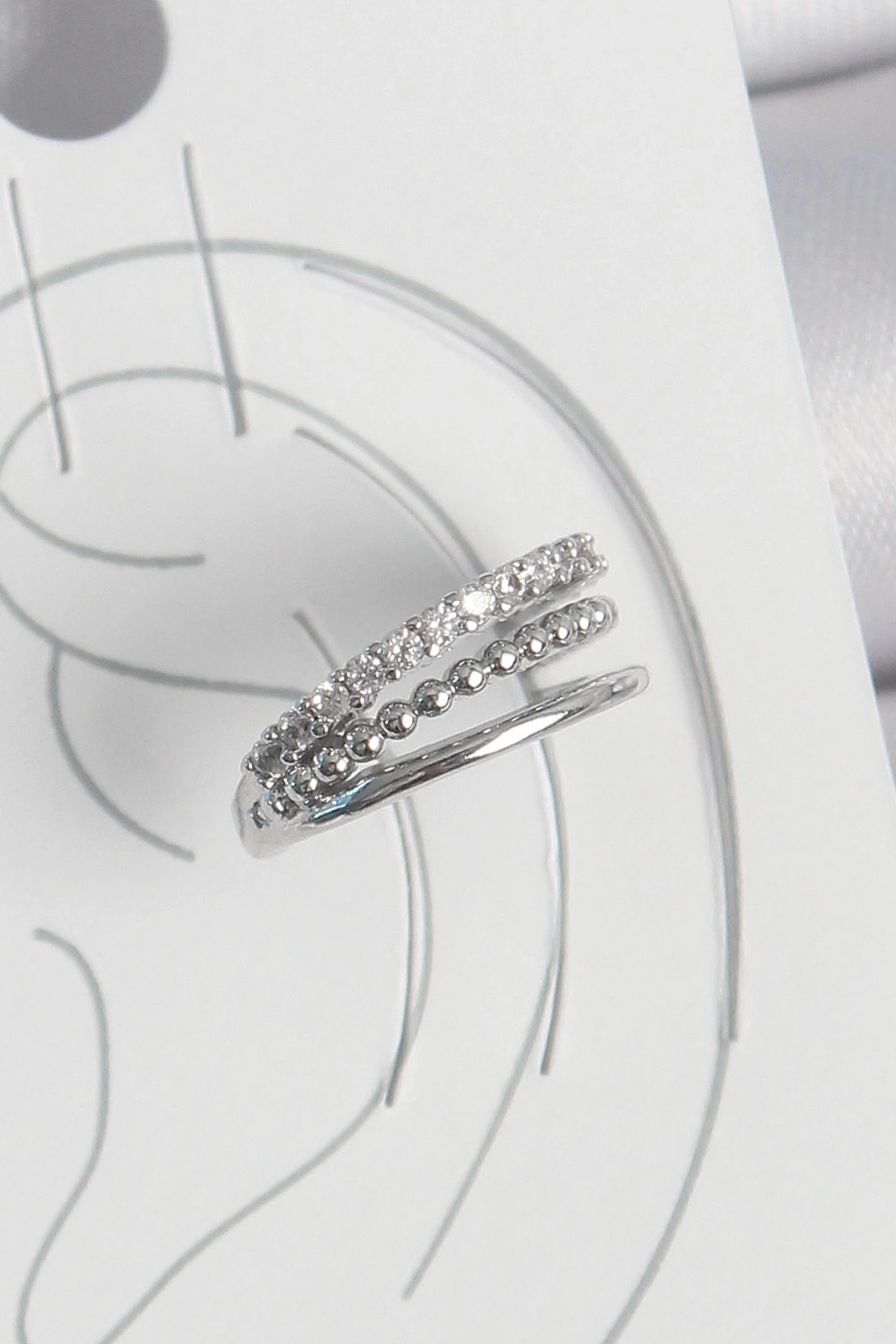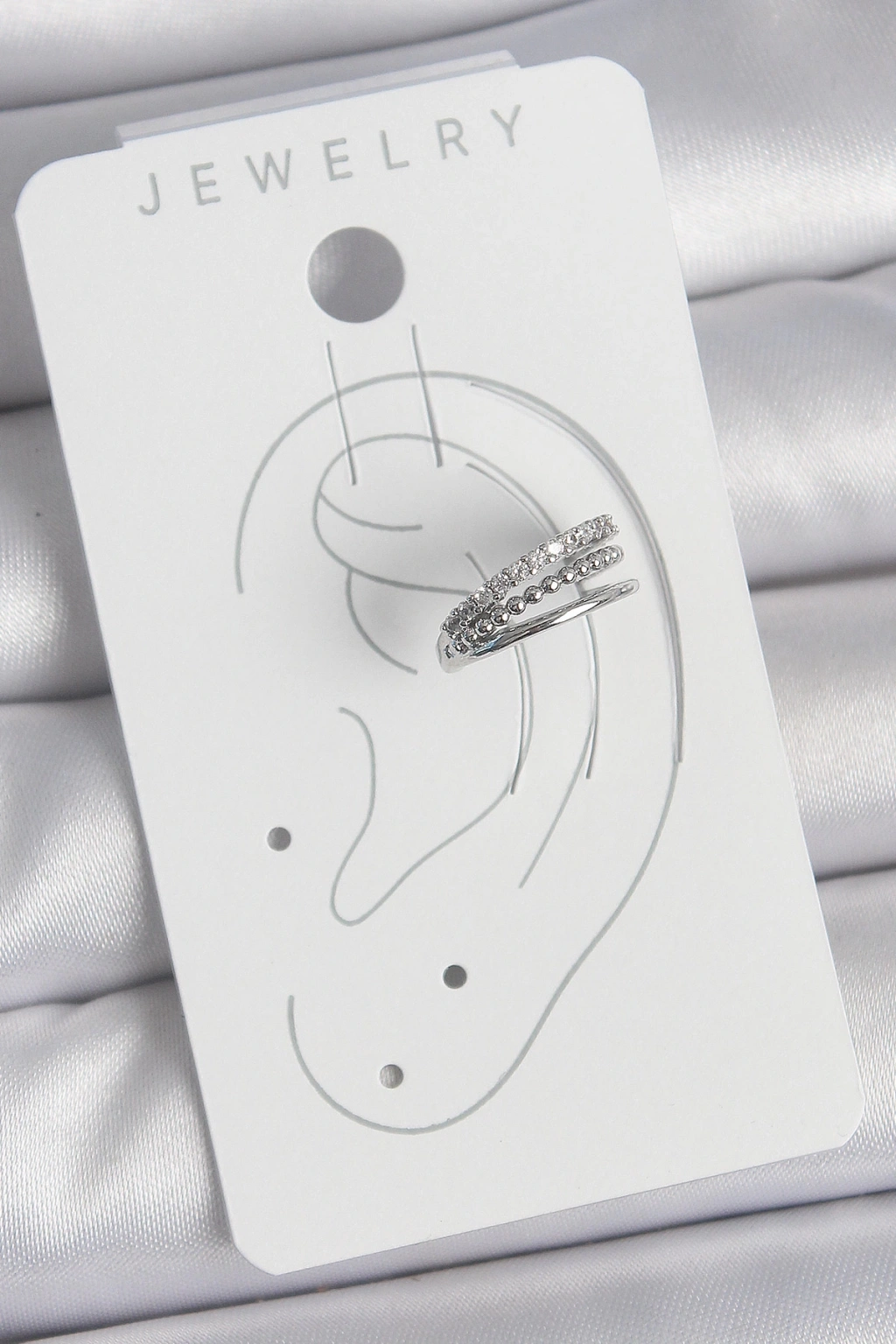 Dodes Dodes Pirinç Gümüş Renk Zirkon Taşlı 3'Lü Sıralı Model Kadın Kıkırdak Küpe TG27BKP10555