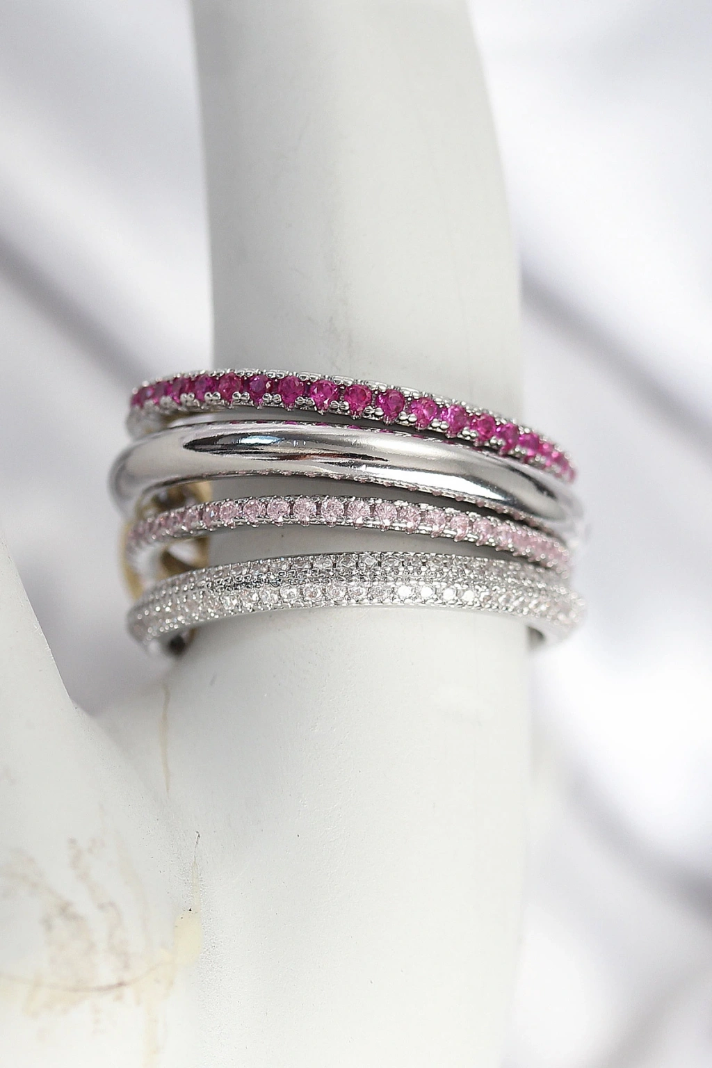 Dodes Dodes Pirinç Gümüş Renk Zirkon Taşlı 4'Lü Kadın Yüzük TG27BYK3829