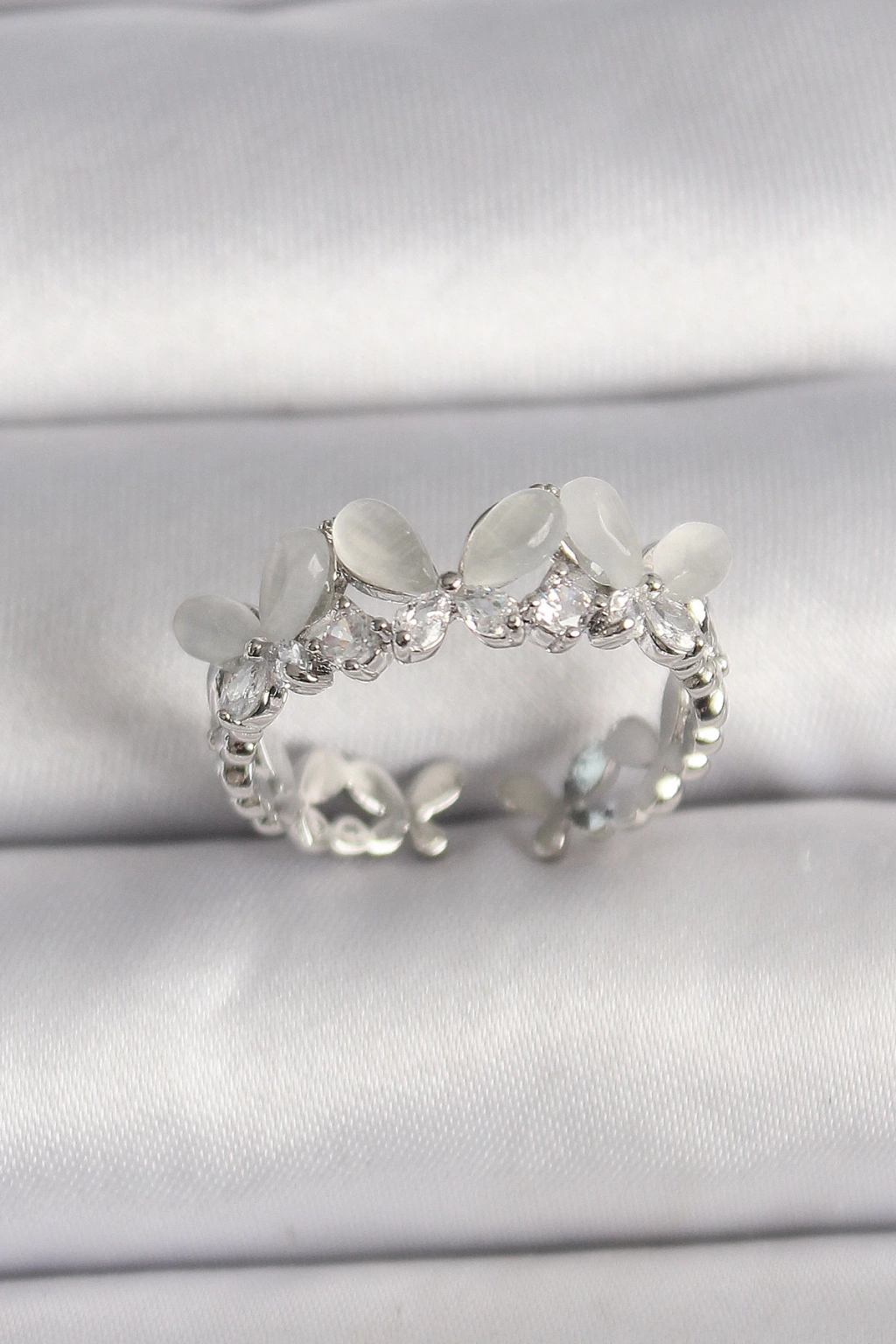 Dodes Dodes Pirinç Gümüş Renk Zirkon Taşlı Beyaz Mineli Kelebek Model Ayarlanabilir Yüzük TG27BYK3530