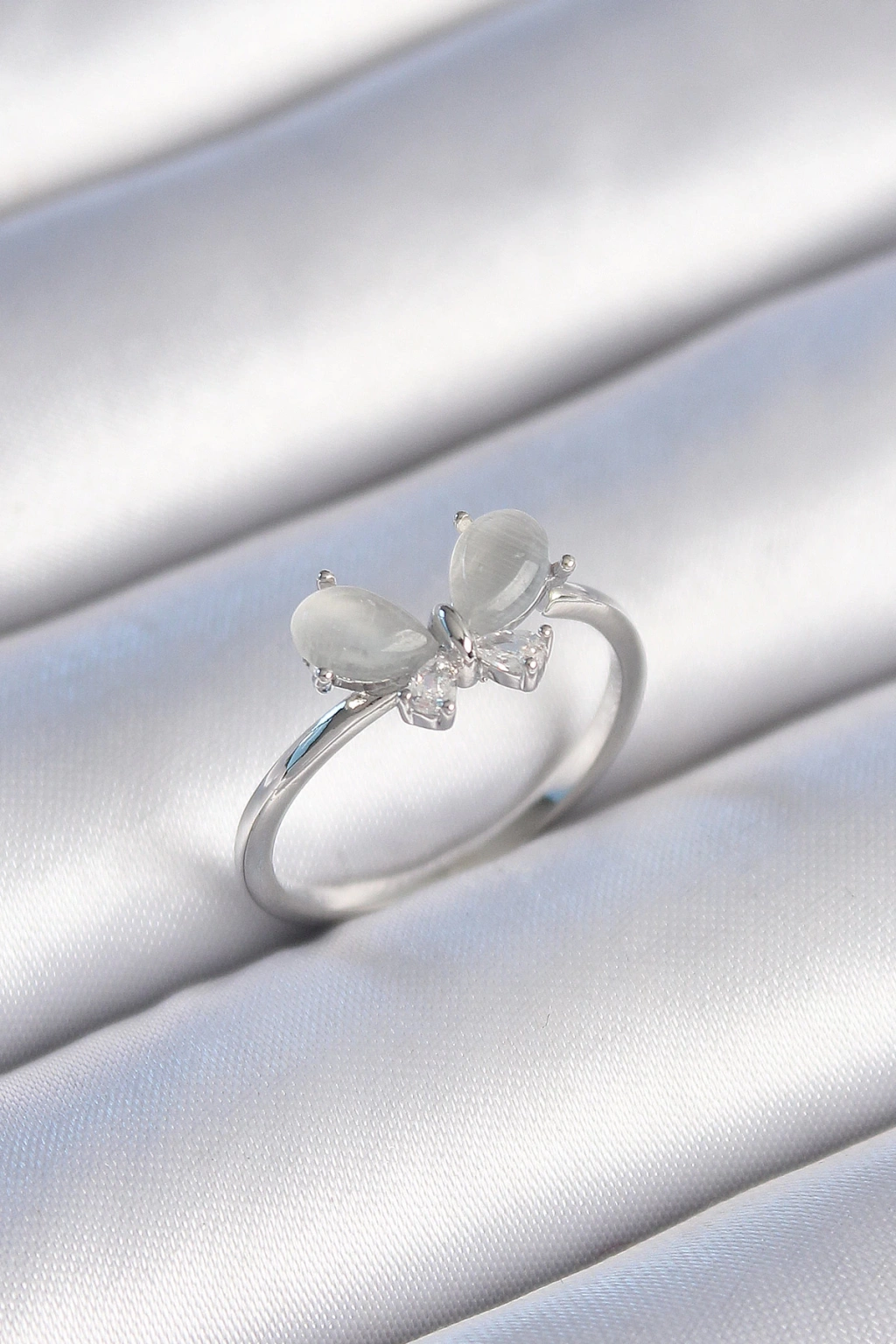 Dodes Dodes Pirinç Gümüş Renk Zirkon Taşlı Beyaz Mineli Kelebek Model Kadın Yüzük TG27BYK3465