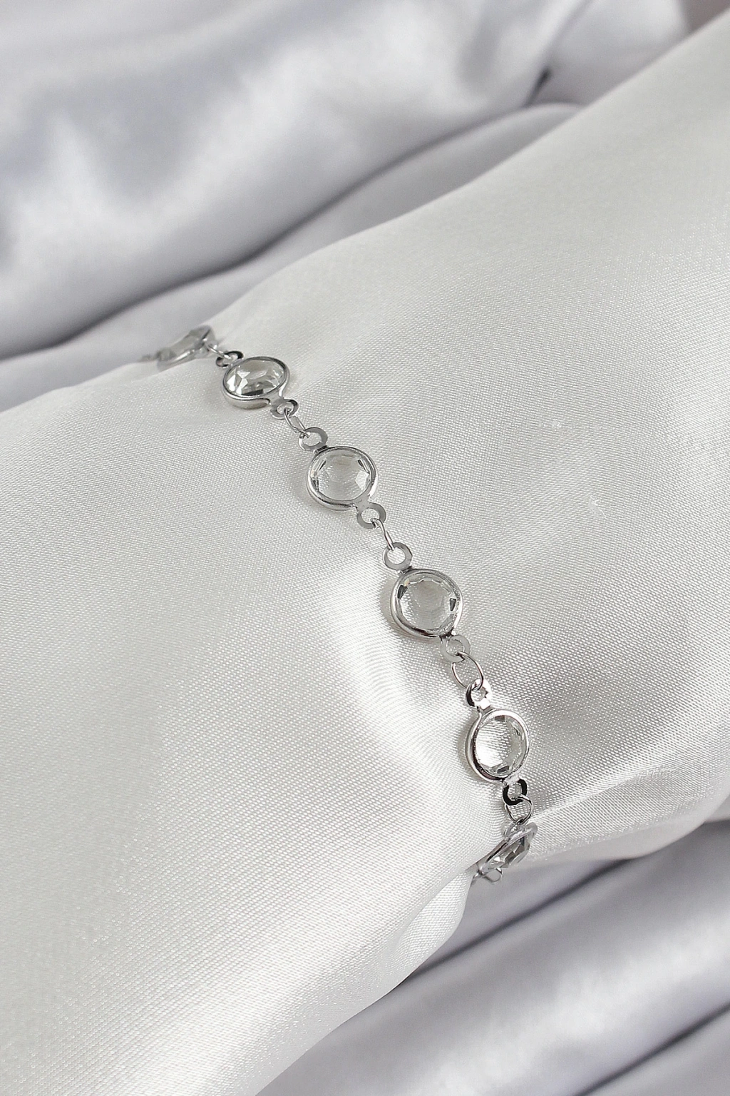 Dodes Dodes Pirinç Gümüş Renk Zirkon Taşlı Bileklik TG27BB7044