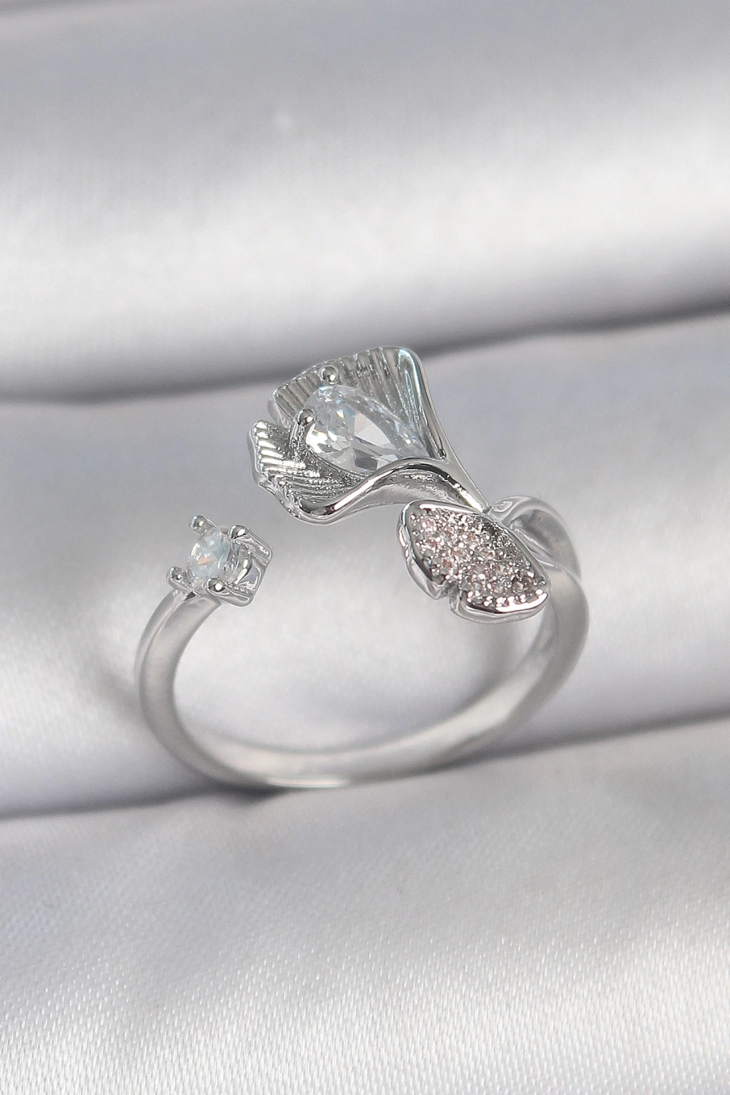 Dodes Dodes Pirinç Gümüş Renk Zirkon Taşlı Deniz Kabuğu Model Ayarlanabilir Kadın Yüzük TG27BYK3740